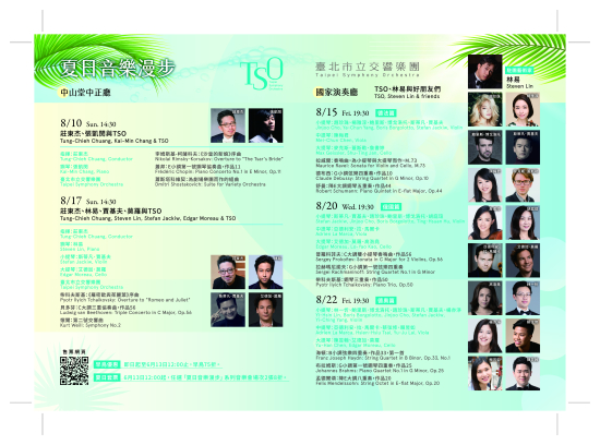 臺北市立交響樂團(TSO)自2024年起邀請林易擔任駐團藝術家,以「青年音樂家.好朋友」為主軸,一起在夏日為舞臺注入充沛的清新能量。今年的「夏日音樂漫步」企劃,將結合駐團藝術家「好朋友系列」,用音樂串起與觀眾的距離,搭配輕鬆氛圍設計,與多位活躍於歐、亞樂壇的國際青年音樂家齊聚一堂。 青年指揮莊東杰打造夏日音樂漫步首部曲 夏日音樂漫步「首部曲」《莊東杰、張凱閔與TSO》及《莊東杰、林易、賈基夫、莫羅與TSO》,邀請青年指揮莊東杰掌舵,將於中山堂中正廳為觀眾帶來意想不到的驚喜與感動。特別值得一提的是,8月10日場次,將邀請即將參賽2025年蕭邦國際鋼琴大賽的臺灣鋼琴家張凱閔擔綱演出。作為我國鋼琴界冉冉升起的新星,張凱閔的演奏融合理性與情感,技藝純熟,深具音樂性。此次登台,觀眾將有機會搶先一睹未來國際賽場焦點人物的風采,並為臺灣音樂界的新希望送上最溫暖的掌聲。8月17日場次,邀請林易與斯蒂凡・賈基夫(Stefan Jackiw)、大提琴家艾德加・莫羅(Edgar Moreau)帶來貝多芬三重協奏曲,精彩可期。 林易駐團計畫:世界音樂家齊聚 共築夏日經典之聲 緊接著駐團藝術家「好朋友系列」,讓炎炎夏日感受年輕、創意的音樂魂,一系列知性與深度的旅程即將於夏日展開。駐團藝術家林易規劃一系列於國家演奏廳精緻深邃的室內樂演出,他參考多個國際音樂節的經驗,希望能將國際級的音樂視野引進臺北,讓世界的聲音在城市共鳴。林易分享他對於夏日音樂漫步的策劃:「這兩年擔任TSO駐團藝術家,有了和以往鋼琴家身分截然不同的體驗,在與國際音樂好友討論曲目的過程中,藉由各種室內樂組合得到更多音樂的可能性與想法,也感受到音樂連結彼此、連結聽眾、連結世界與臺北。」 林易表示,跟TSO有十年的淵源,包括2015及2023年的演出,當時他是以獨奏家的身分與TSO合作,就感覺TSO的團員很會聽獨奏家的聲音並給予支持及回應,讓他印象深刻,這次很高興有機會擔任TSO的駐團藝術家,與TSO的音樂家們一起討論曲目、討論音樂共同演奏出來,2-3週大家聚在一起,音樂家彼此更加有默契而更瞭解彼此親近,更連帶與聽眾的距離更近,這就是音樂的power,年輕音樂家的strong。林易表示有人的connection就會有音樂,透過音樂有實體的表達而拉近人與人間的距離。 本次邀集多位國際知名音樂家來臺共襄盛舉,林易表示去年與莫羅、鮑里斯.博戈洛托(Boris Borgolotto)、趙珍珠(Jinjoo Cho)合作時留下了美好回憶,對臺北的聽眾有著非常好的印象。今年將擴大這項計畫的規模,除了上述三位熟面孔外,也將迎來新夥伴,包括小提琴家斯蒂凡.賈基夫(Stefan Jackiw)、中提琴家亞德里安.拉.馬爾卡(Adrien La Marca)與大提琴家麥克斯.蓋斯勒(Max Geissler),更多音樂好朋友一起同歡,將與TSO音樂家同台迸出璀璨火花。 整體節目不僅顯現林易對室內樂的深刻理解,更展現TSO作為國際音樂交流平台的深厚實力,林易充滿期待地提出未來的期許:「一直很喜歡音樂節這個概念,希望未來的『夏日音樂漫步』能發展為為期兩至三週的『國際夏日音樂節』,能夠在未來的『臺北音樂廳』舉行,吸引更多來自世界各地的年輕音樂家參與。」未來臺北舉辦國際音樂節,相信來自世界各地的音樂家好友們都會帶著家人來臺北共襄盛舉,這也是林易的夢想,希望透過音樂節的累積建立國際的音樂社群(build music community)。 為實現這項願景,一座優質的演出場地是不可或缺的。目前正積極籌建中的「臺北音樂廳」,正是能肩負此重任的關鍵設施。該音樂廳規劃興建一座擁有1,500席的葡萄園式主廳、一座600席的多媒體排練實驗空間,以及數個不同規模的排練廳,是國際知名建築聲學大師徐亞英老師的最後設計作品,將以卓越的聲學性能,成為臺北音樂藝術發展的重要基地。未來,臺北音樂廳也將成為臺北市立交響樂團與國樂團的常駐演出場所,也將為臺北打造出一個與國際音樂節接軌的理想平台。 音樂不只是藝術 更是盛夏生活提案 走出音樂廳,走向城市綠地與文化空間,TSO將於7月26日至27日熱情加入松山文創園區「夏日松一下」活動,以4場輕鬆愉快的免費室內樂演出作為夏日暖手,邀請市民朋友於夏日午後時光感受音樂的美好。在樂音中漫遊夏日風景,為臺北市注入一股音樂新律動,成為市民們「暑假最具質感的新選擇」。 TSO期盼讓音樂走入日常,無論您是古典樂迷,或是正尋找暑假清涼避暑的藝文選擇,TSO夏日音樂漫步都將為您帶來一段耳目一新、沁涼動人的夏日體驗。邀您一同走入TSO的盛夏樂章。 【夏日音樂漫步 購票優惠】 自2025年6月13日(五)12:00前,享早鳥75折優惠,2025年6月13日(五)12:00後,任選2場可享8折優惠,以上方案最低票價不予折扣。更多演出資訊與購票詳情,敬請參閱OPENTIX節目列表:https://www.opentix.life/topic/1560116802290040832 TSO 2025夏日音樂漫步場次: 【2025 TSO 夏日音樂漫步】莊東杰、張凱閔與TSO 時間:8/10(日)14:30 地點:中山堂中正廳 【2025 TSO 夏日音樂漫步】莊東杰、林易、賈基夫、莫羅與TSO 時間:8/17(日)14:30 地點:中山堂中正廳 【2025 TSO 夏日音樂漫步】TSO、林易與好朋友們─德法篇 時間:8/15(五)19:30 地點:國家演奏廳 演出人員: 小提琴:趙珍珠、鮑里斯.博戈洛托、楊雅淳、斯蒂凡.賈基夫 Jinjoo Cho, Boris Borgolotto, Ya-Chun Yang, Stefan Jackiw, Violin 中提琴:陳梅君 Mei-Chun Chen, Viola 大提琴:麥克斯.蓋斯勒、詹書