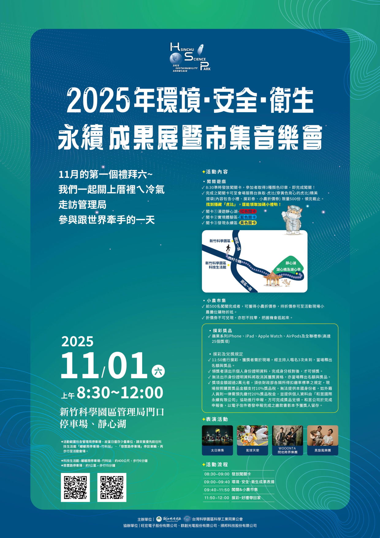 「2025環安永續成果展暨市集音樂會」11/1登場 竹科管理局邀您闔家同樂