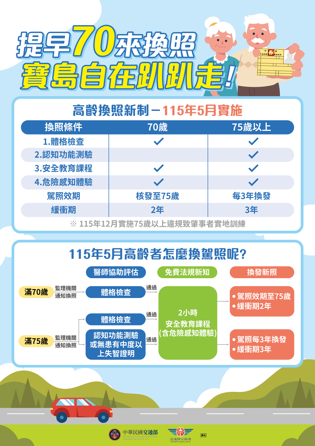 為主動關懷高齡者的用路安全,交通部公路局特別於全國舉辦 7 場「高齡換照講座:醫師出任務」。第四場於12月9日在南投縣草屯鎮新厝里集會所暨活動中心登場,活動結合臺中榮總醫院醫師與在地民眾熱情參與,融入醫學專業與交通安全政策,與現場長輩進行深入交流,現場氣氛熱絡,反應踴躍。 ![]() 醫師出任務 圖/臺中區監理所南投監理站提供 這次醫師出任務活動,是讓長輩了解換照政策及了解自身身心狀況,希望長輩平安駕駛車輛,活動上半場由臺中榮總侯伯勳主任擔任講師,從醫學的專業角度深入淺出地講解高齡身體機能退化與交通安全的關係;下半場則由臺中區監理所專業監理人員解說高齡駕駛人提早70歲換照相關規定。 ![]() 醫師出任務 9日活動亦設計「有獎徵答」互動環節,並準備實用的安全帽與交通安全宣導品作為獎品。在榮總醫師與臺中監理所人員專業且親切的帶領下,70位長輩輕鬆愉快的氛圍中熱情參與,多位長輩踴躍提問,頻頻稱許辦活動的用心,讓長輩可以多了解新政策,達到寓教於樂效果。 ![]() 醫師出任務 圖/臺中區監理所南投監理站提供 臺中區監理所南投監理站也提醒,高齡換照從115年5月起實施,年滿70歲以上的長輩,請收到監理所、站的通知再換照,不需要提前換照喔。 ![]() 醫師出任務 圖/臺中區監理所南投監理站提供 承辦單位:臺中區監理所南投監理站第二股 聯絡人:黃暐棠副站長 聯絡電話:049-2350923 分機192 |