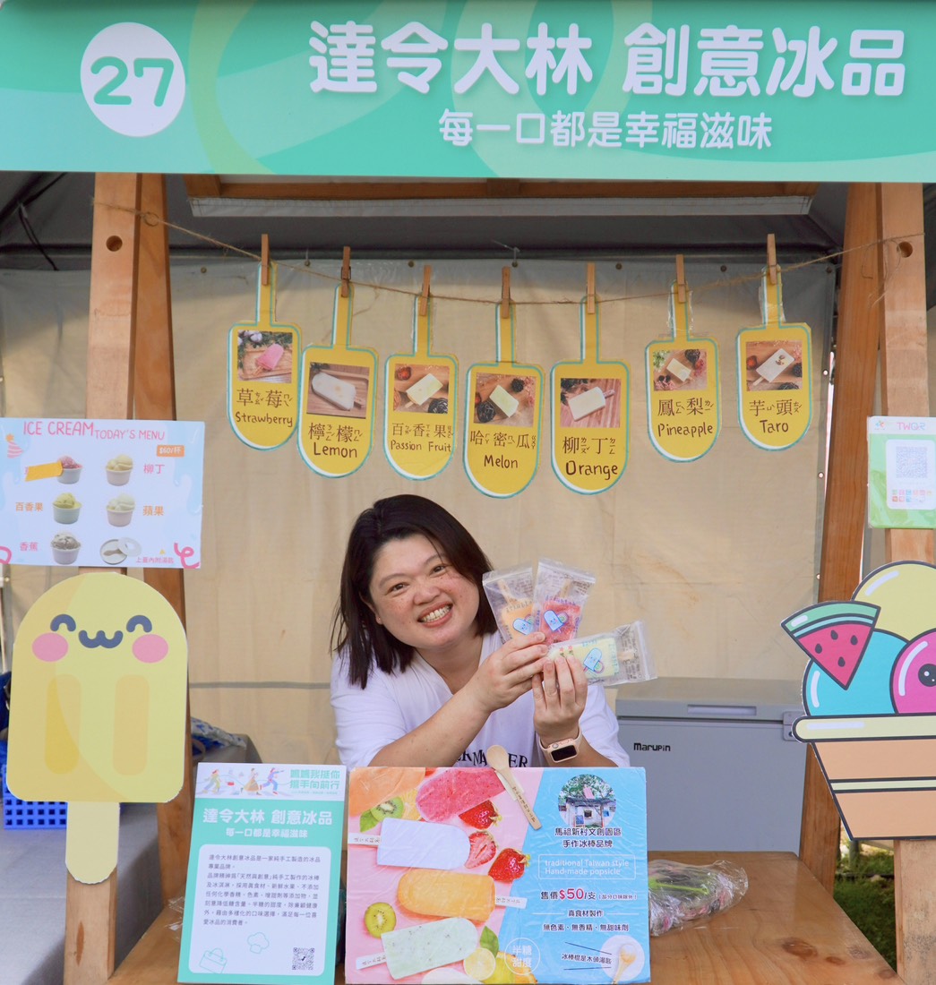 好感生活企業社(達令大林冰品)負責人黃筱君,專注於冰棒、冰淇淋及生活雜貨的研發與銷售,創業5年來始終堅持創新與品質,透過「微型創業鳳凰」貸款及輔導資源協助,逐步拓展企業客製化冰品業務。達令大林冰品提供企業LOGO或活動圖,即可客製專屬冰棒或冰淇淋,設計、包裝與冷鏈配送一條龍服務,廣受企業喜愛。達令大林冰品已成功與多家知名品牌合作,成為活動商品中的亮點,未來也將持續創新,提供更多獨特冰品體驗。