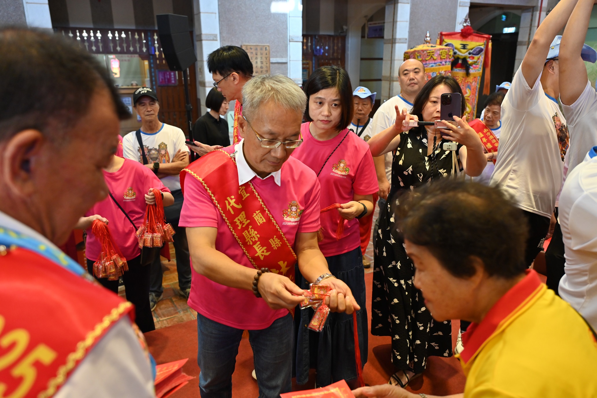代理縣長林茂盛親自扛起神轎進場,以最謙恭的禮數迎請媽祖,展現縣府虔敬之心,帶領現場貴賓、各鄉鎮市首長及一級主管向駐駕於縣政府的媽祖等眾神尊上香祈福,同心祈求風調雨順、四時無災。