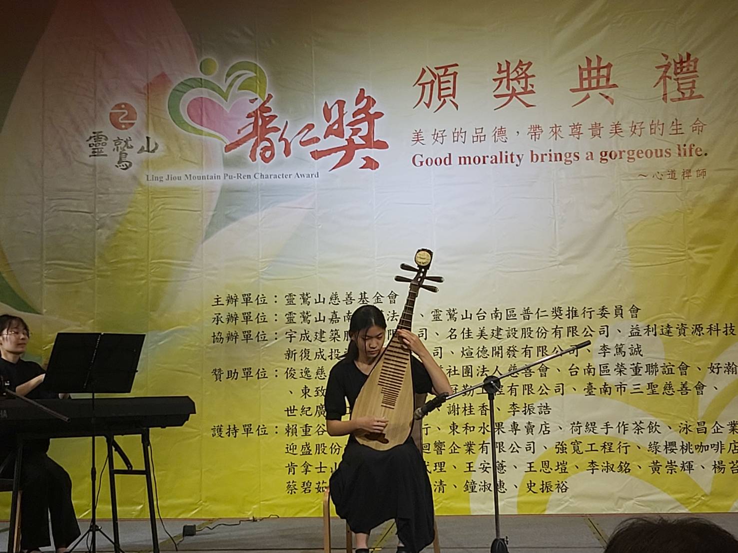 圖說2. 普仁小太陽王孟涵在頒獎典禮上表演琵琶。(圖片提供/靈鷲山佛教教團)
