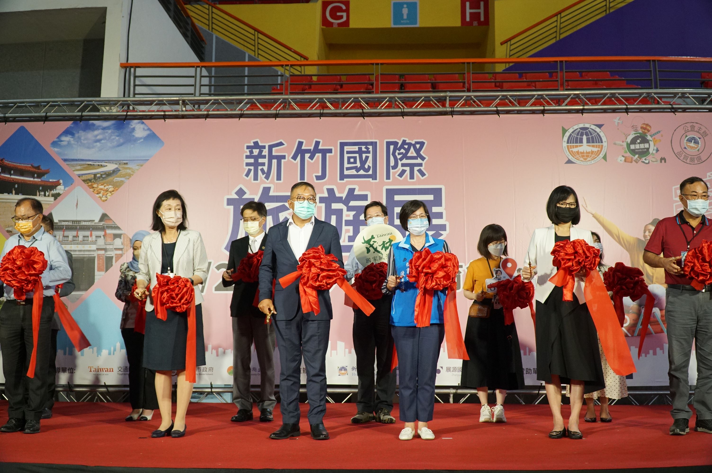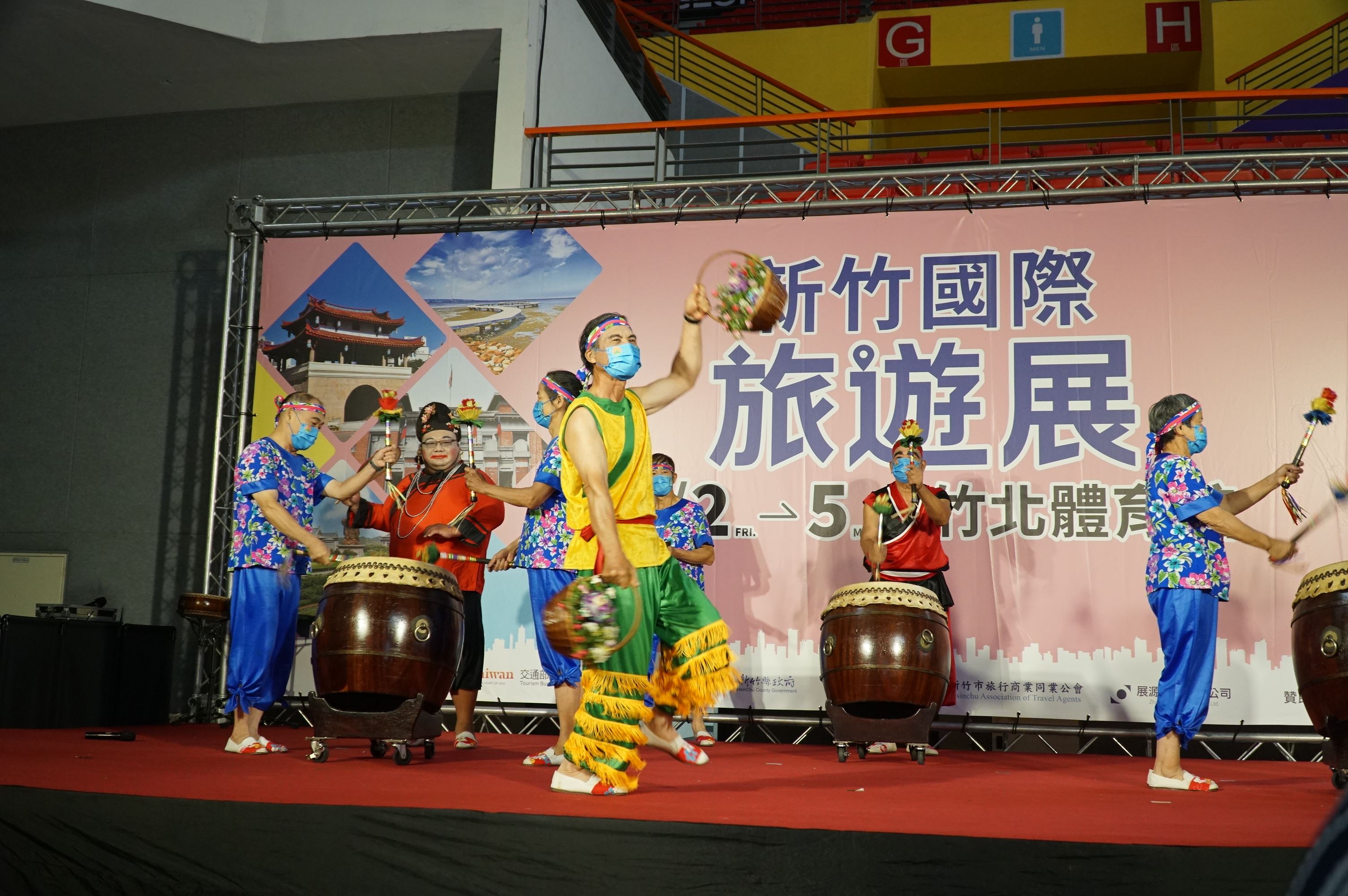 縣府交旅處表示,迎接新冠肺炎疫情逐漸趨緩的國旅商機,縣府邀集新竹縣觀光協會、旅館商業同業公會、觀光民宿協會、小叮噹科學主題樂園、大山背休閒農業區、姜太公柿餅等業者,共襄盛舉一同參與久違的實體旅展,共同打造新竹縣主題館,規劃眾多好康活動與民眾同樂。新瓦屋花鼓隊在旅展開幕表演,贏得熱烈的掌聲。