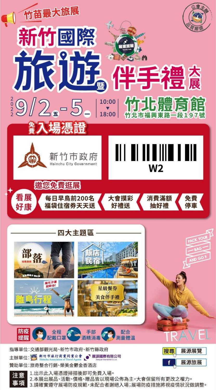 竹苗區最大的國際旅展「2022新竹國際旅遊暨伴手禮大展」,9月2~5日一連4天在竹北體育館盛大開展,共有100家廠商、150個攤位參與。其中新竹縣政府「竹縣好好玩」主題館,推出多項下殺優惠,打卡送吉祥物皮皮獅限定好禮,還有近期最夯的好客Point也加碼大方送。