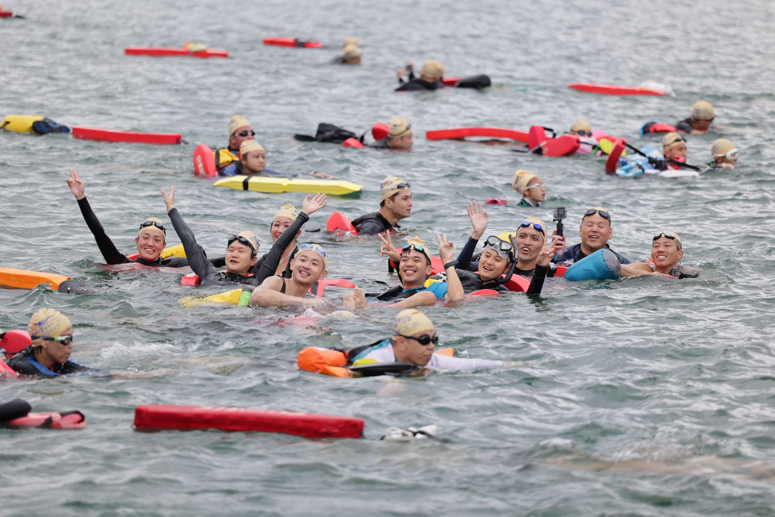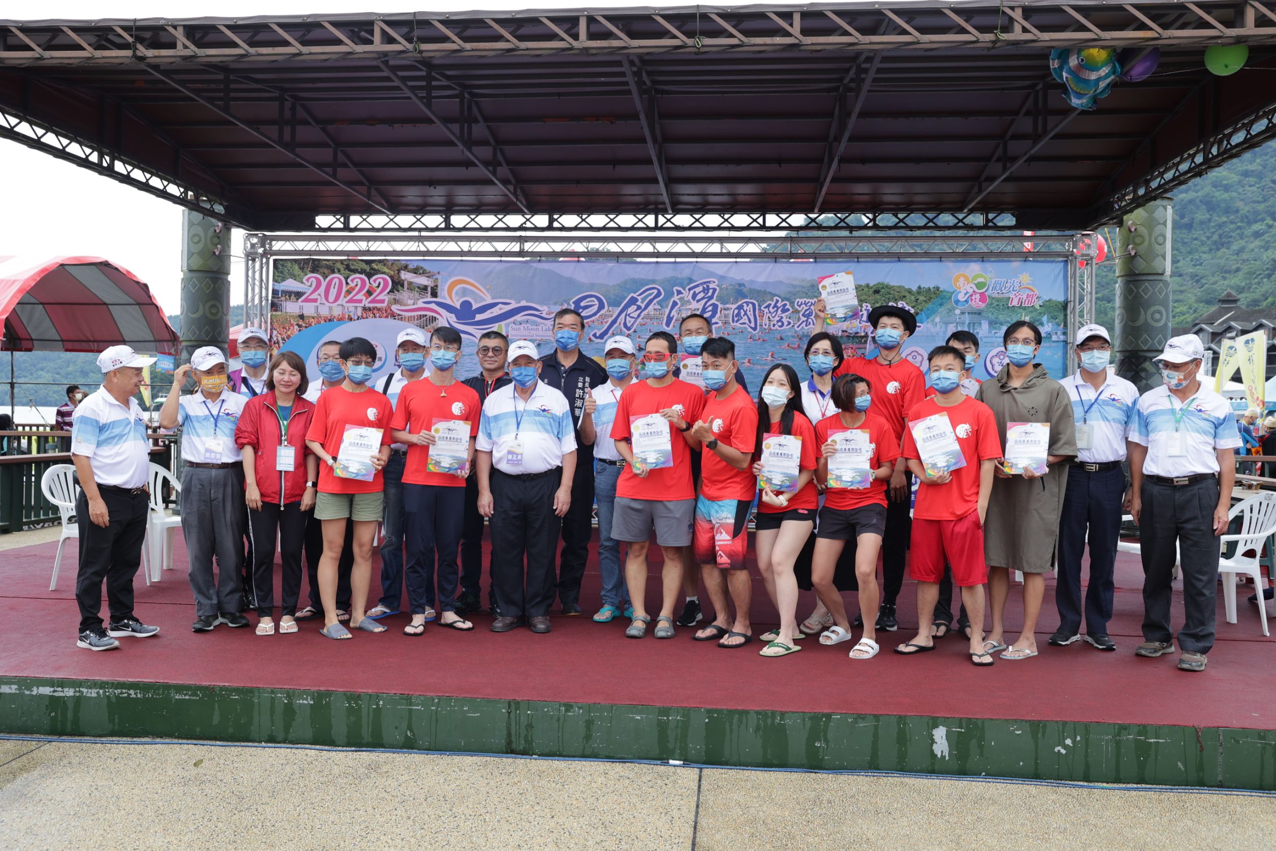 包括報名選手均須打滿3劑疫苗,報到並須提供賽前48小時內快篩陰性證明,下水前後口罩戴滿戴好,正因為全體泳客及眷屬朋友,配合大會防疫規定並落實防疫工作。