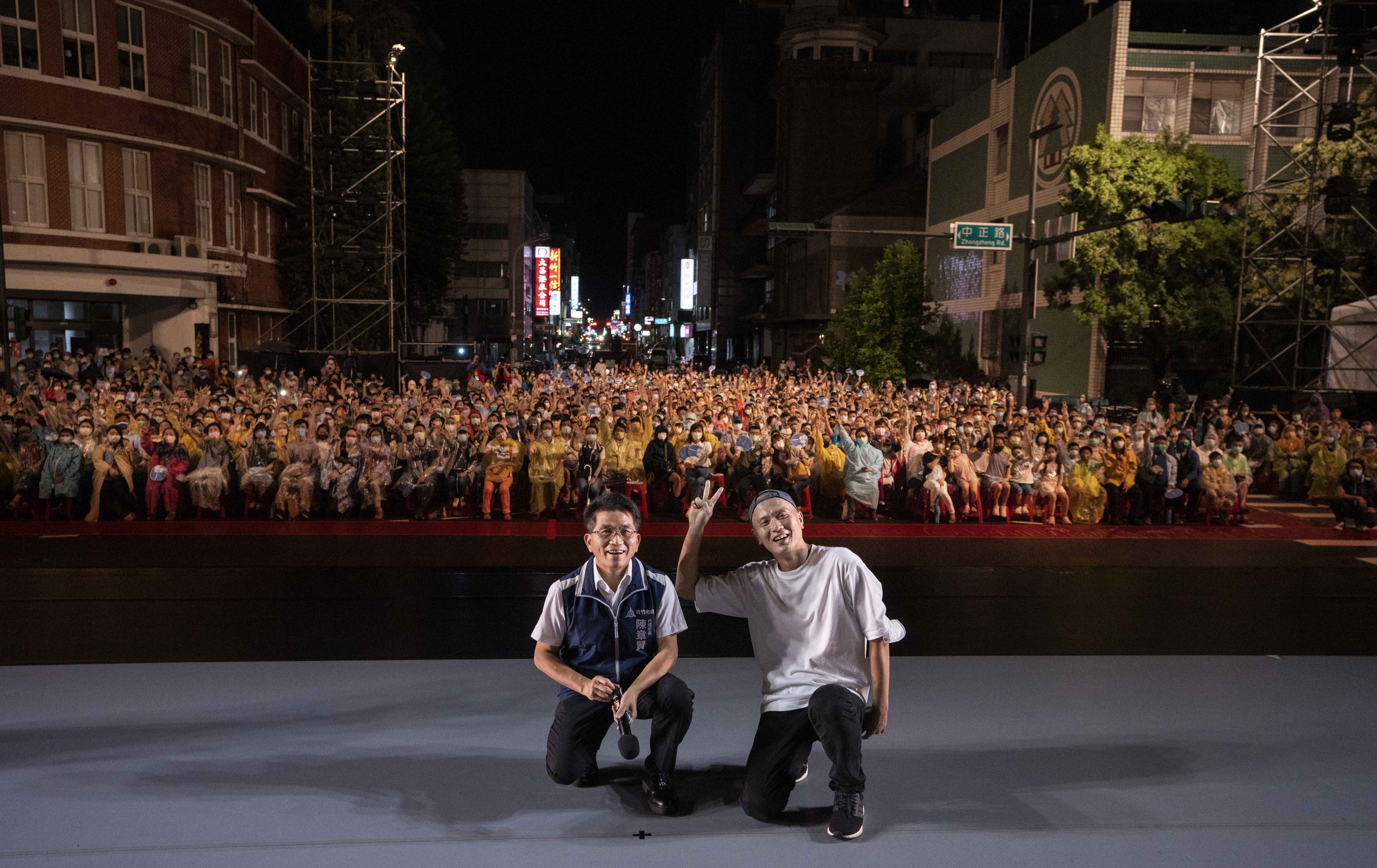 圖一陳章賢代理市長(左)、雲門舞集藝術總監鄭宗龍(右)與民眾合影 圖/新竹市政府提供