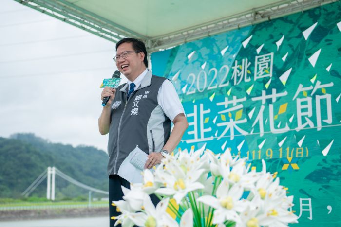 桃園市長鄭文燦今(11)日下午前往大溪區,出席2022桃園韭菜花節閉幕式。鄭市長表示,今年韭菜花節主題為「把韭問月,遇水與綠」,說明大溪為北部韭菜的最大種植專區,且水與綠休閒農業區以韭菜為推廣特色,而韭菜花就如同「九月雪」一般美麗,此次韭菜花田裡的「韭是愛你-LOVE」、「中秋九月韭-翹翹板」等裝置藝術品都深受市民朋友喜愛。