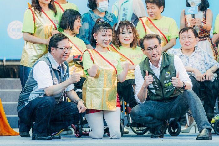 鄭市長提到,桃園是一多元友善的城市,本次活動邀請許多不同的表演團體,其中也包含身障表演團隊,他們用生命演出,展現出人生的韌性與精彩,相當令人敬佩,鄭市長也特別向表演團隊表達鼓勵和感謝之意。
