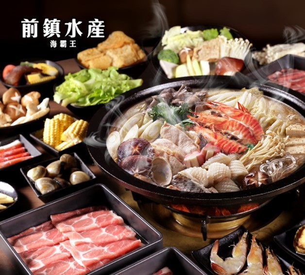 前鎮水產提供十品新鮮海鮮及六款精選肉品無限點,超市自助區提供超過30種的火鍋配料與當季時蔬,還有各式飲品與冰淇淋也供顧客盡情享用。另特別設置台味副食吧,有曾經在滷肉飯節得獎的滷肉搭配香軟米飯,與充滿台式風情的米粉與鹹粥,都可無限量享用。