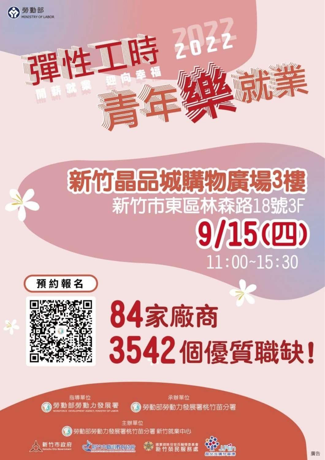 新竹區今(111)年最大場就業博覽會「青年樂就業」,將於9月