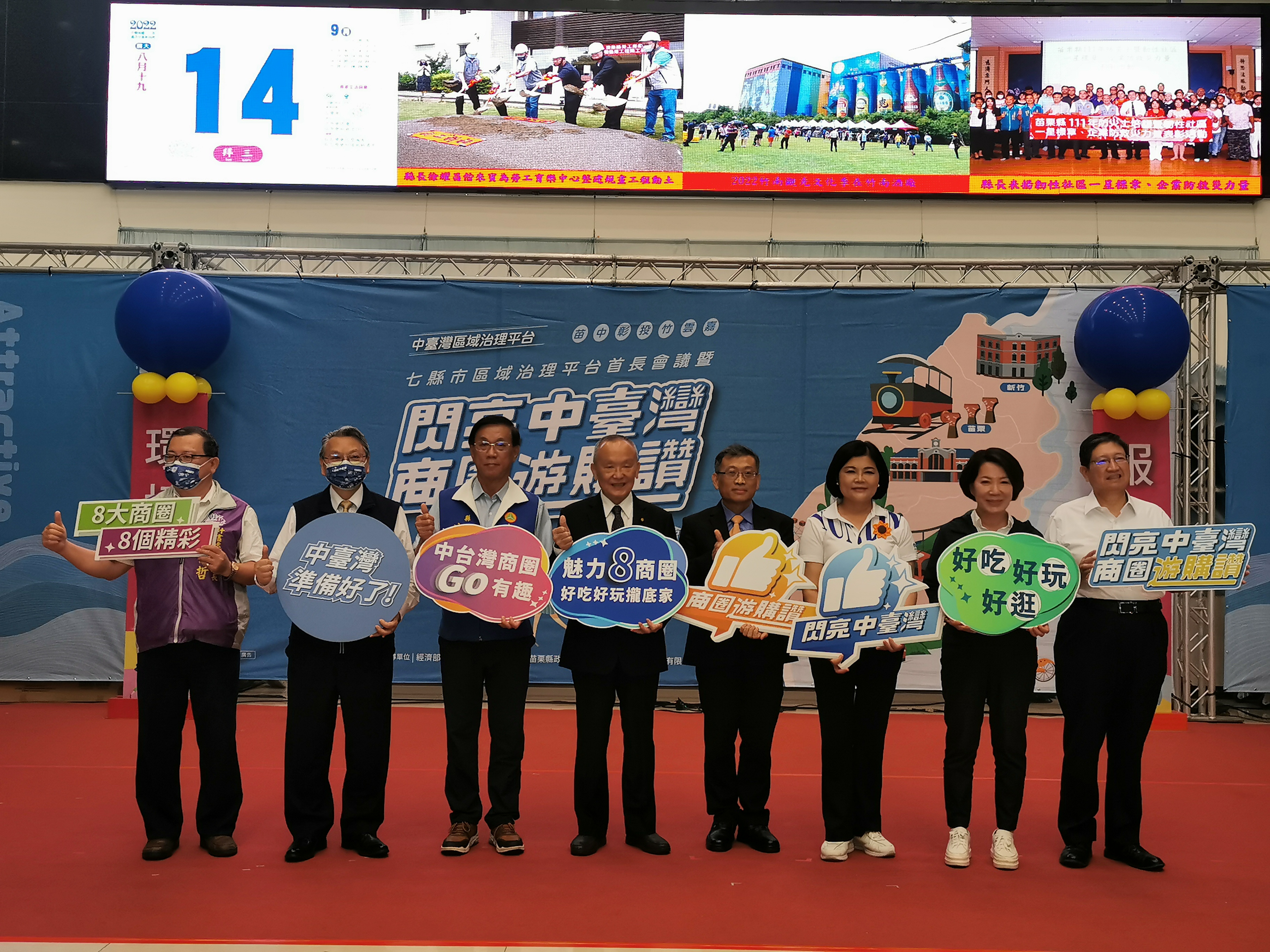 為藉此表揚及行銷宣傳,苗栗縣政府特別於中臺灣區域治理平台七縣市首長會議後,匯集七縣市首長帶領商圈理事長及業者,並特別邀請經濟部中小企業處共同宣示打造中臺灣特色商圈環境,並聯合行銷宣傳。記者會中,除了由國際知名表演藝術團體「優人神鼓」帶來振奮人心的動人曲目,展現中臺灣的團結、活力與氣勢,各商圈也拿出渾身解數在現場展示各自好買、好玩、好逛等特色商品及店家介紹,藉由聯合宣傳來振興商圈產業經濟,讓全國民眾看到中部七縣市的發展實力。