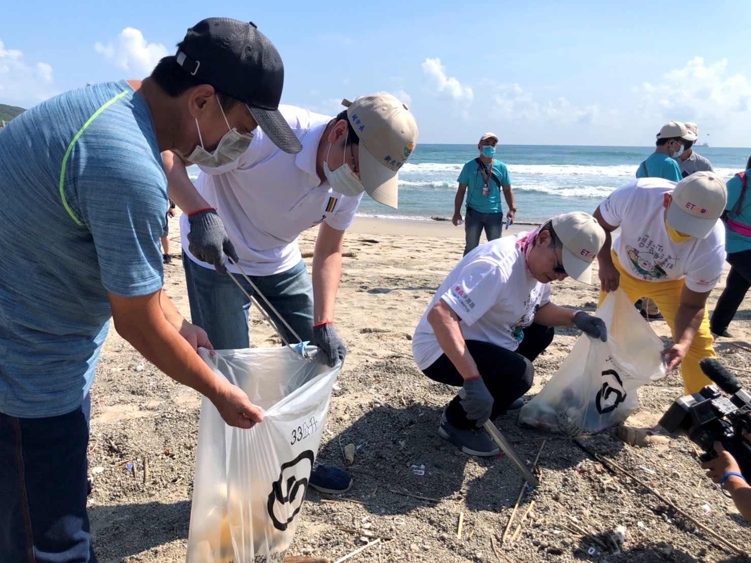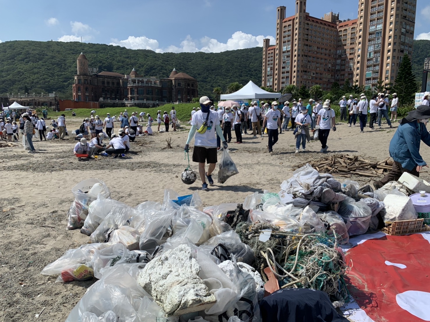 劉和然說,今天的北海岸熱鬧非凡,有許多企業及民間團體響應「國際淨灘日」,包含光寶科技、技嘉科技股份有限公司、昇恆昌股份有限公司、台灣村田股份有限公司、社團法人重新思考環境教育協會、荒野保護協會等,也期待有更多民眾、企業、民間團體加入。