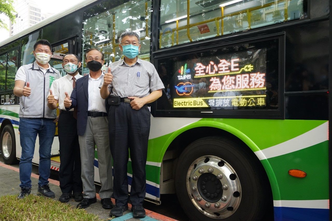 臺北市長柯文哲今(9/20)出席「電動公車新未來/全新全E為您服務」記者會,展現臺北市政府推動336輛電動公車上路成果,記者會上包含交通部、交通部公路總局、臺北市公車聯營管理委員會、14家聯營公車及台北富邦商業銀行等,共同宣示持續推動綠能運具,朝2030年公車全面電動化目標邁進。