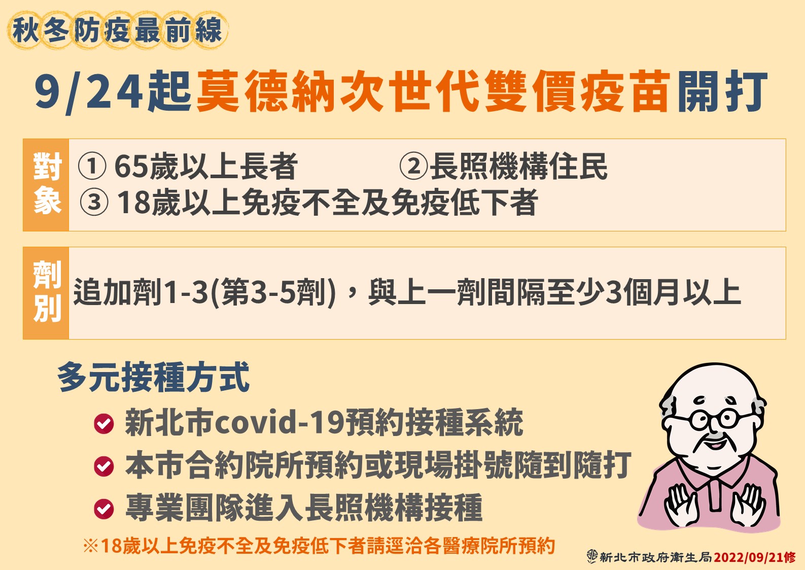 新北市衛生局 COVID-19及雙價次世代疫苗預約接種開跑
