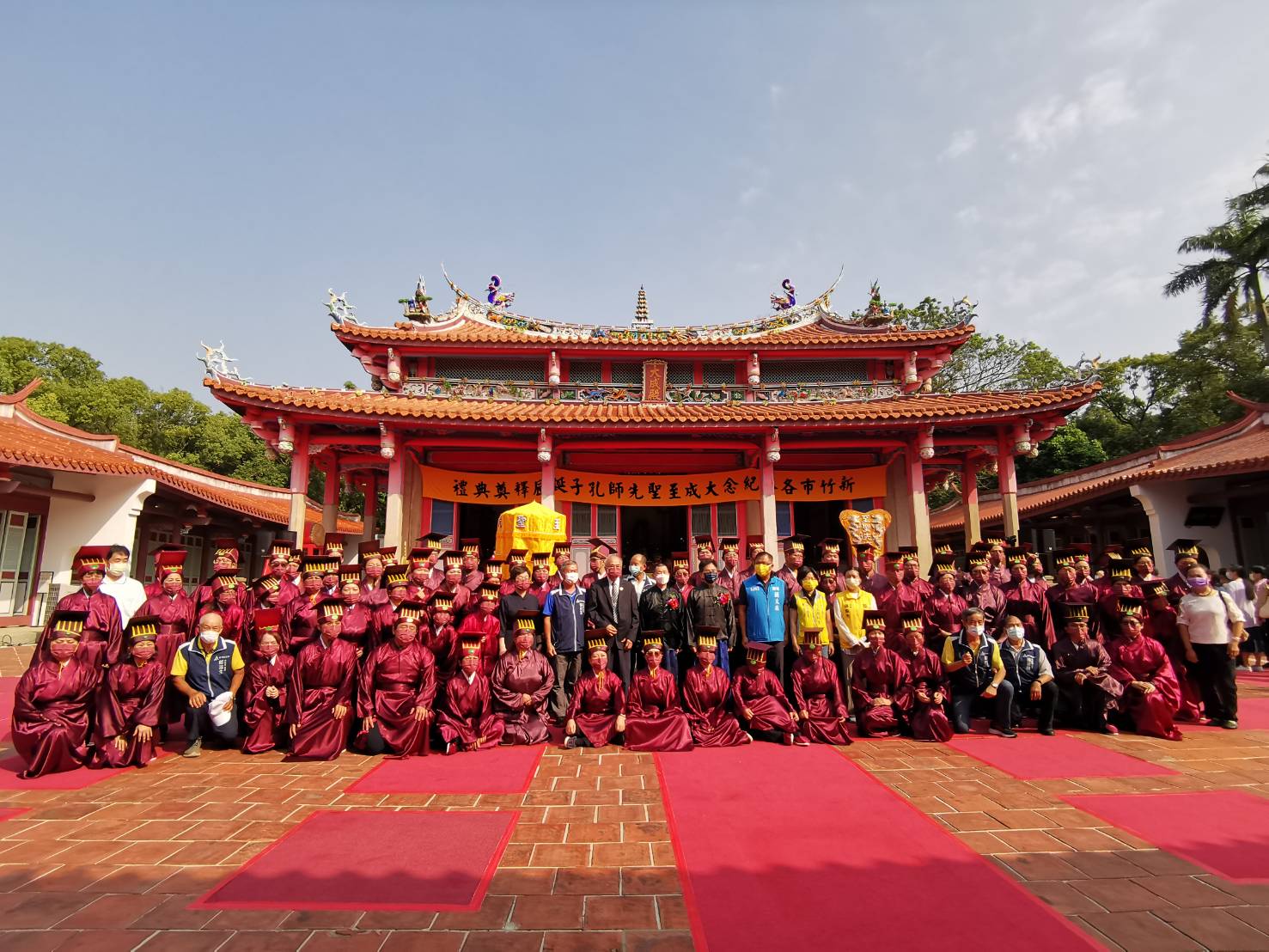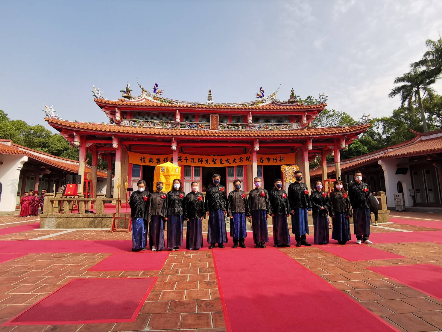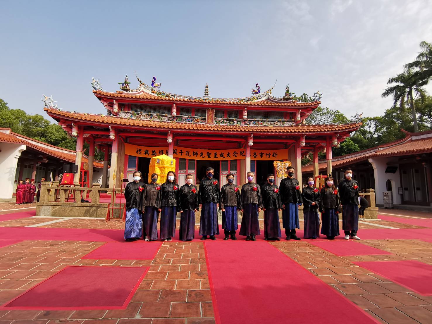 今天祭孔大典由國立清華大學副校長簡禎富擔任東配分獻官、國立交通大學教務長陳永昇擔任西配分獻官、孔子第76代孫孔令姮擔任東哲分獻官、宏宗聖堂道學院前人謝德祥擔任西哲分獻官、教育處處長賴榮光及培英國中校長潘致惠擔任東廡先賢先儒分獻官、三民國中校長丁淑觀及民富國小校長吳淑雯擔任西廡先賢先儒分獻官、孔廟鄉賢祠後代由王盛東代表擔任鄉賢祠分獻官、民政處處長顏章聖擔任糾儀官、前社會處長武麗芳擔任祝文官,以及議員黃文政到場共襄盛舉。