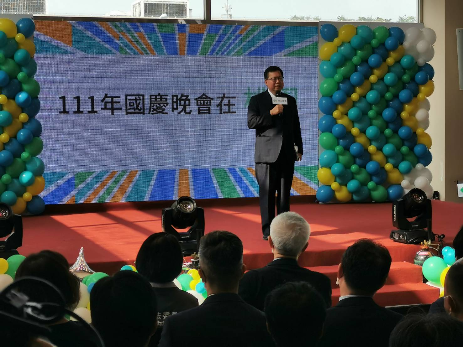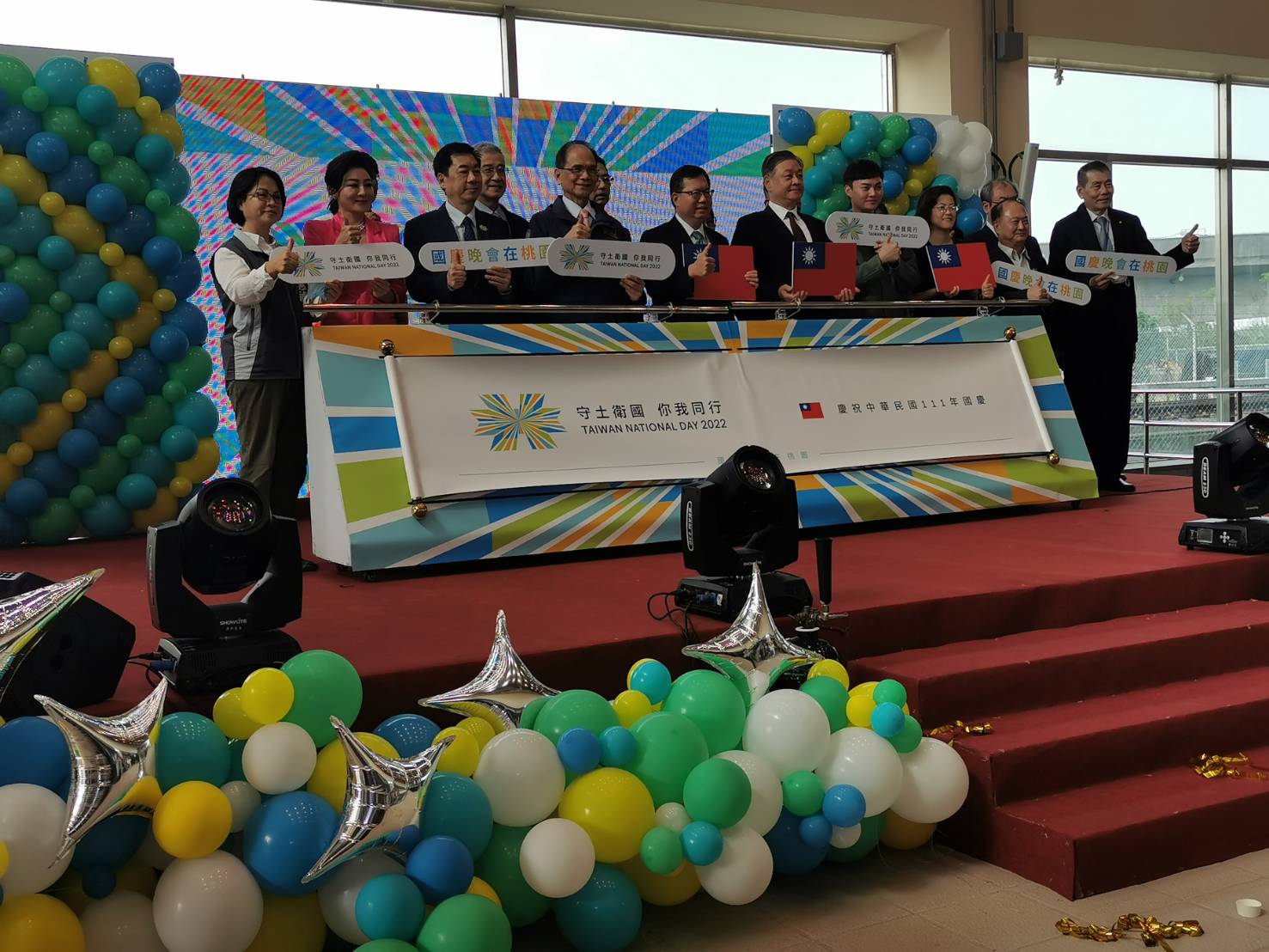 桃園市長鄭文燦今(29)日上午前往大園區,出席「111年國慶晚會在桃園」記者會時表示,今年國慶主題為「守土衛國‧你我同行」,睽違3年國慶晚會再度於桃園舉行,今年舉辦場地特別選在鄰近機場的陽光劇場,透過節目安排展現台灣多元文化魅力,同時接軌流行音樂文化。國慶晚會預計10月9日17時30分舉行、16時30分起開放民眾自由入場,為111年國慶盛事拉開精彩序幕。