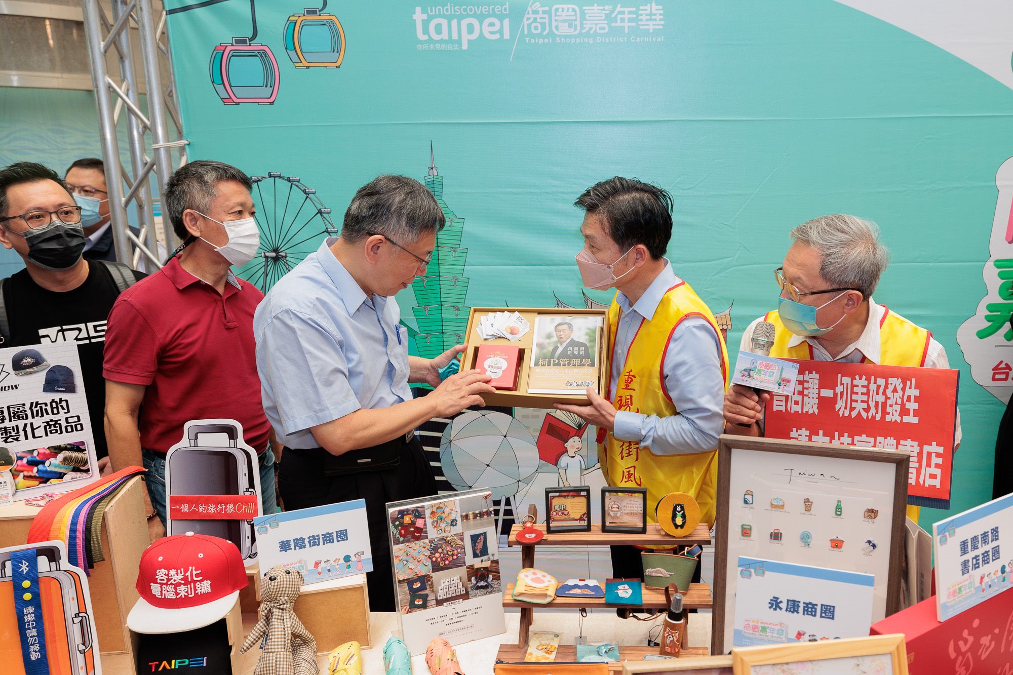 柯文哲市長、市府長官及本市商圈產業代表於商圈主題選品前合影