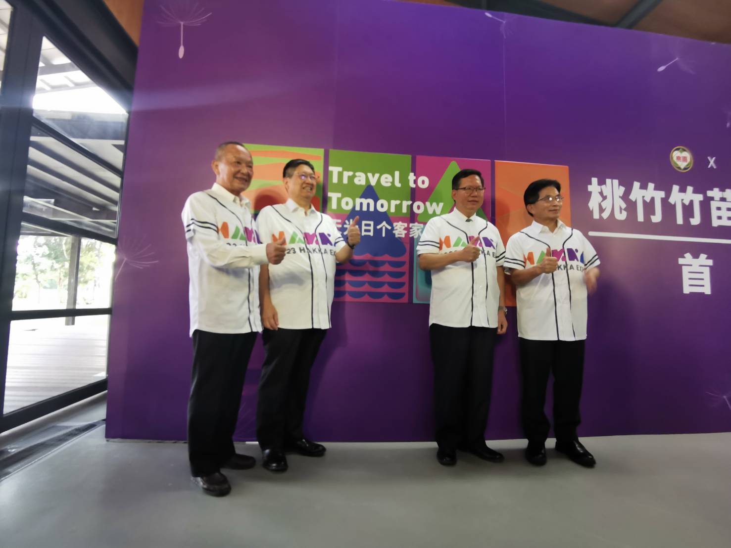 除了4項區域合作議題之外,桃竹竹苗首長也身著世客博紀念球衣,宣誓加入「2023世界客家博覽會」台灣館策展行列,共同展現支持2023世界客家博覽會的決心。對此,鄭市長談到,世界客家博覽會除了有主展區「世界館」與「台灣館」2大主展館之外,副展場亦涵蓋崙坪文化地景園區、永安海螺文化體驗園區、台灣客家茶文化館、橫山書法藝術館等8大副展館及多個衛星展區。雖然世界客家博覽會由桃園市主辦,仍應結合台灣各縣市客家特色,特別是桃竹竹苗作為客家第一庄,透過4縣市合作,為博覽會提供素材,讓世界客家博覽會展現當地獨有的文化特色,讓國人藉此認識客家文化,也期盼未來世界客家博覽會由不同區域辦理,打造台灣客家主題慶典。
