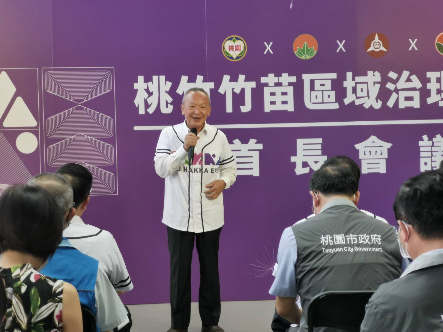 今日包括新竹縣長楊文科、苗栗縣長徐耀昌、新竹市代理市長陳章賢以及桃園市政府、新竹縣政府、苗栗縣政府、新竹市政府等市府團隊均一同出席桃竹竹苗區域治理平台首長會議暨記者會。