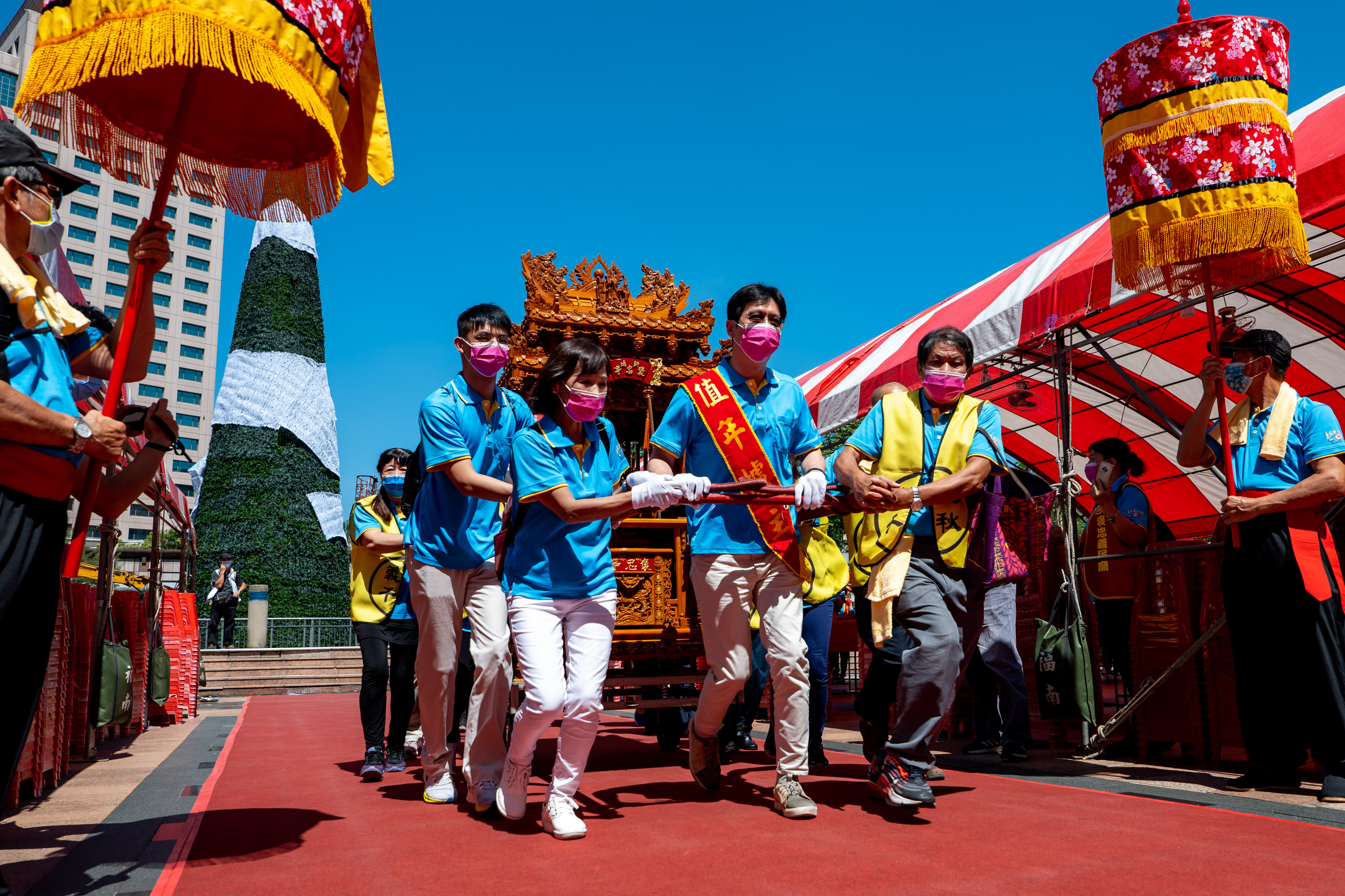 客家人年度的盛事「新北市客家義民爺文化祭」,今(10/1)日以莊嚴隆重的安座大典於新北市市民廣場正式揭開為期3日的序幕,稍早由值年爐主新北市客屬崇正會曾瀚霖及新北市政府客家事務局林崇智副局長共同率領新北市各界客屬鄉親代表,南下新竹新埔枋寮義民廟恭迎義民爺北上,由迎神社團透過古禮涼傘開路,迎接義民爺神主牌入座神轎車,行經三重等地區受到民眾置香案祭拜歡迎,並由重機隊、獅陣、鼓陣、客家八音等19輛前導車,浩浩蕩蕩地引領義民爺迎駕至市民廣場,由陳純敬副市長主持安座大典,共同為市民朋友祈福,祈求風調雨順,國泰民安。