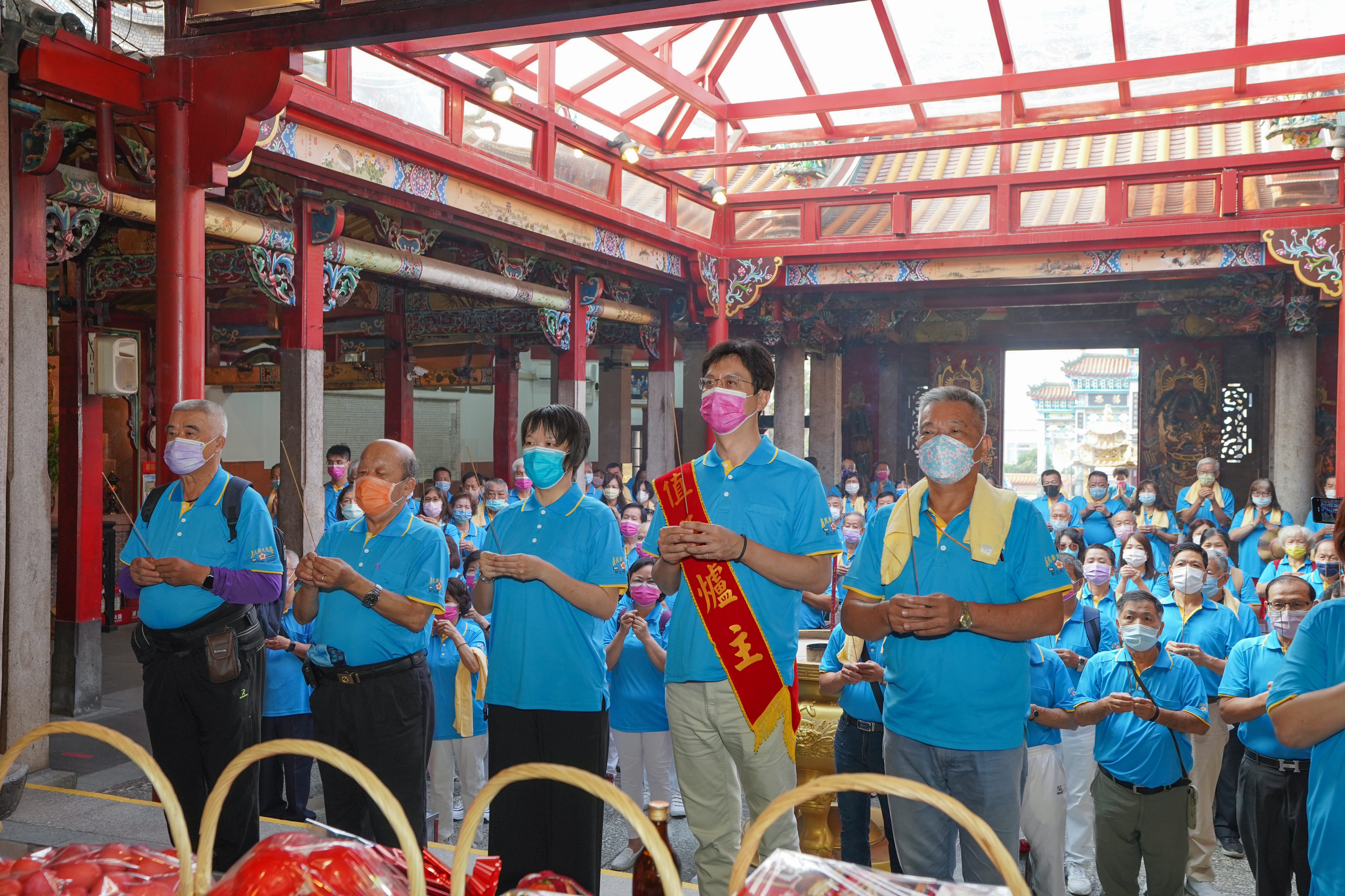 爐主曾瀚霖理事長(右二)、新北市客家事務局林副局長崇智(右三)與鄉親們共同至新埔義民廟 圖/新北客家事務局提供