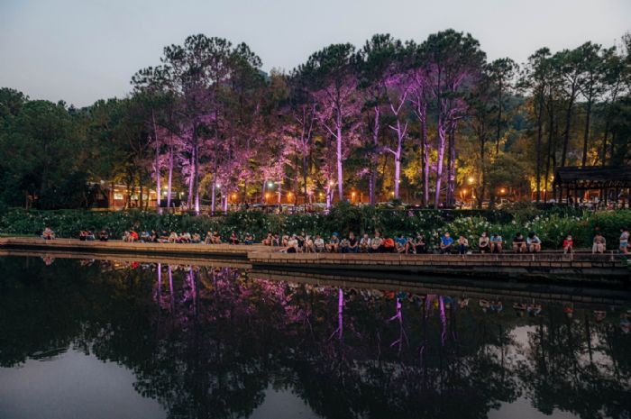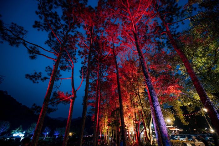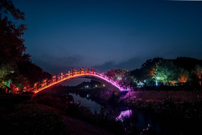 鄭市長指出,本次「慈湖火舞光影季」,為讓民眾再次感受夜遊大溪的魅力,規劃五大燈區,分別為「精靈天空樹區」,環繞樹木的燈光將隨著音樂七彩變化;「風動螢火蟲區」佈置成彷彿無數螢火蟲在夜空飛舞;慈湖橋規劃為「夢幻彩虹橋」;慈康橋則有「童趣互動光廊」,可藉由踩踏不同顏色方格,改變橋兩側顏色;慈湖停車場旁樹區設有「浪漫七彩步道」,透過染色舞臺燈具,將繽紛色彩塗染在樹葉上,營造浪漫氣氛,歡迎大家前來欣賞體驗。