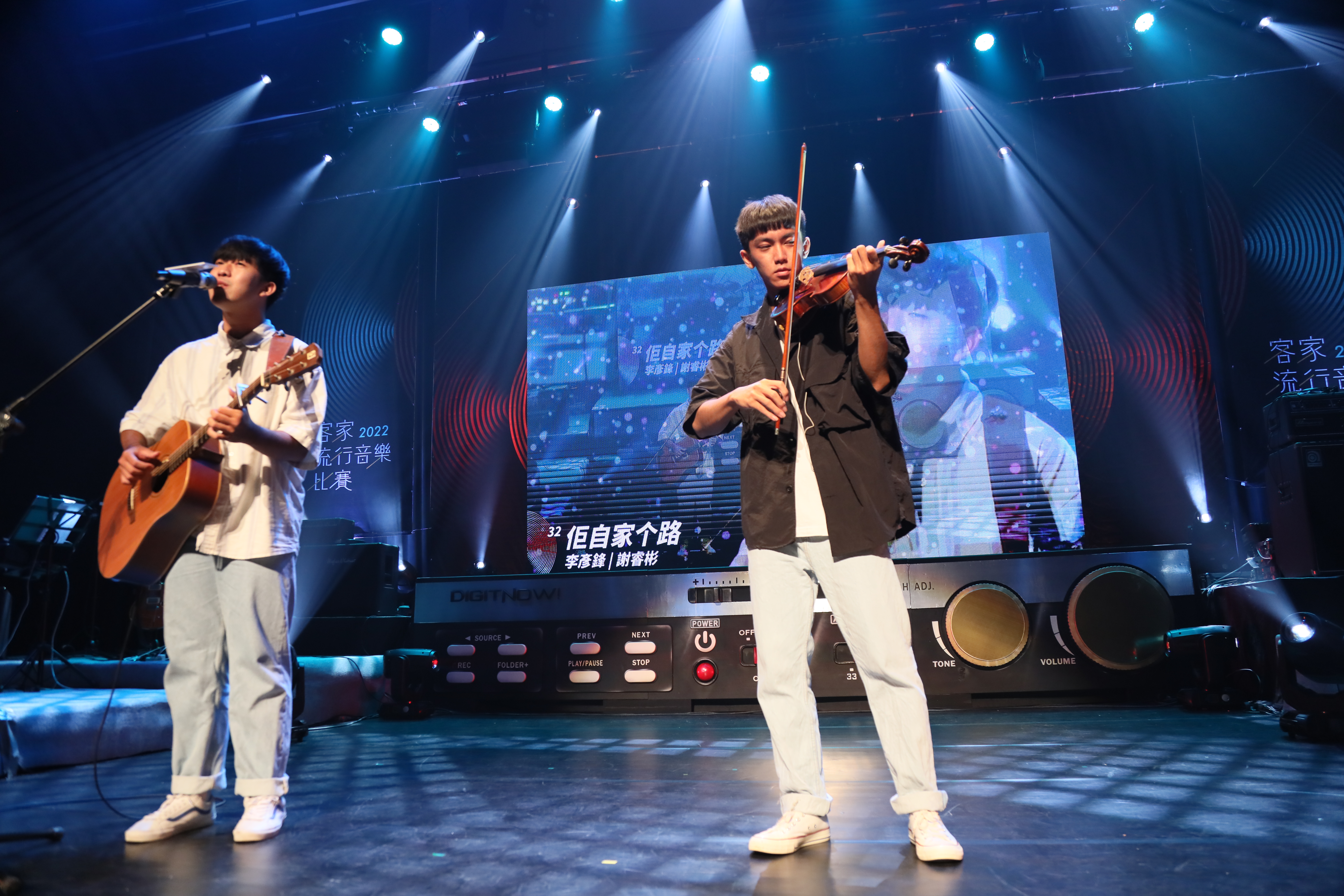 2022客家流行音樂—人才培育暨音樂比賽分為「流行歡唱組」及「流行新秀組」,共計121組客家音樂好手報名參加,分別於10月1日、2日在桃園市客家文化館演藝廳進行決賽,角逐冠軍寶座。今年比賽的亮點為「流行新秀組」-自創組,參賽團隊實力堅強,大有看頭,前三名得獎者「楊玉凡/阿公」、「李彥鋒、謝睿彬/佢自家个路」、「江晟榮/伙房」後續將進行數位單曲音樂製作,要讓優秀的作品透過數位發行至全球。