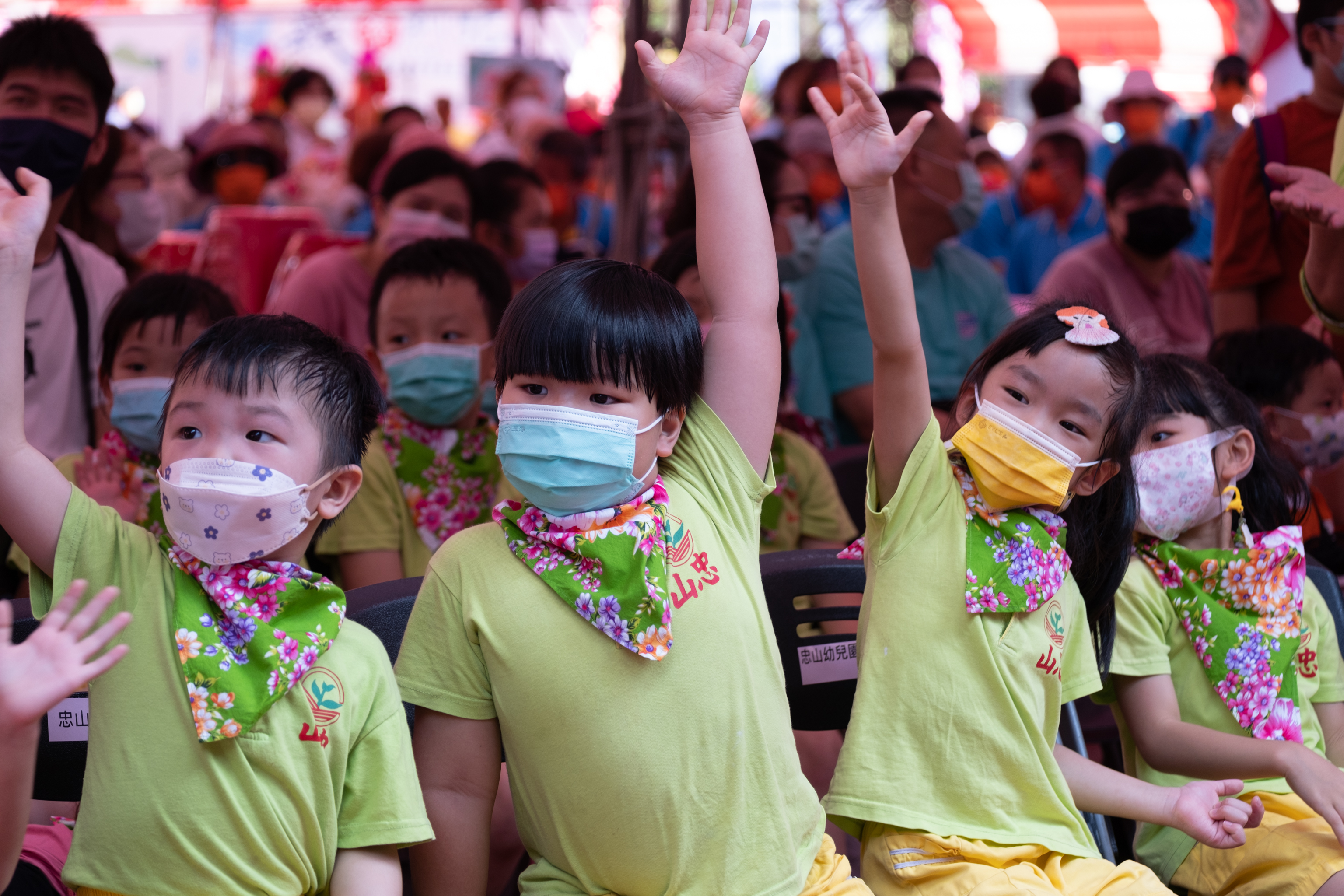 幼兒園學童跟著《老山歌》、《來去新北市》及《平板山歌》舞動身軀.