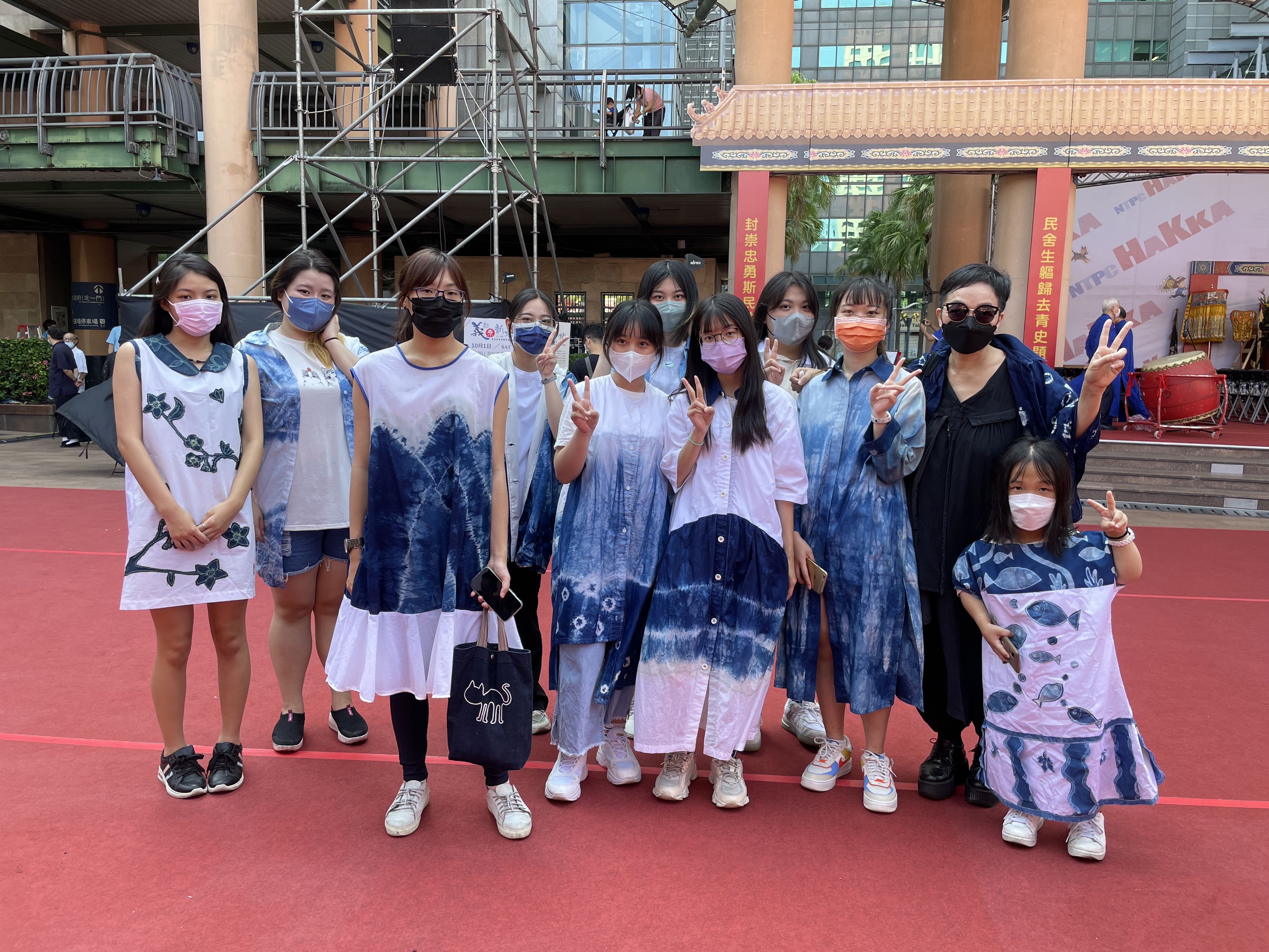 亞東科技大學學生身穿藍染服飾親臨現場.