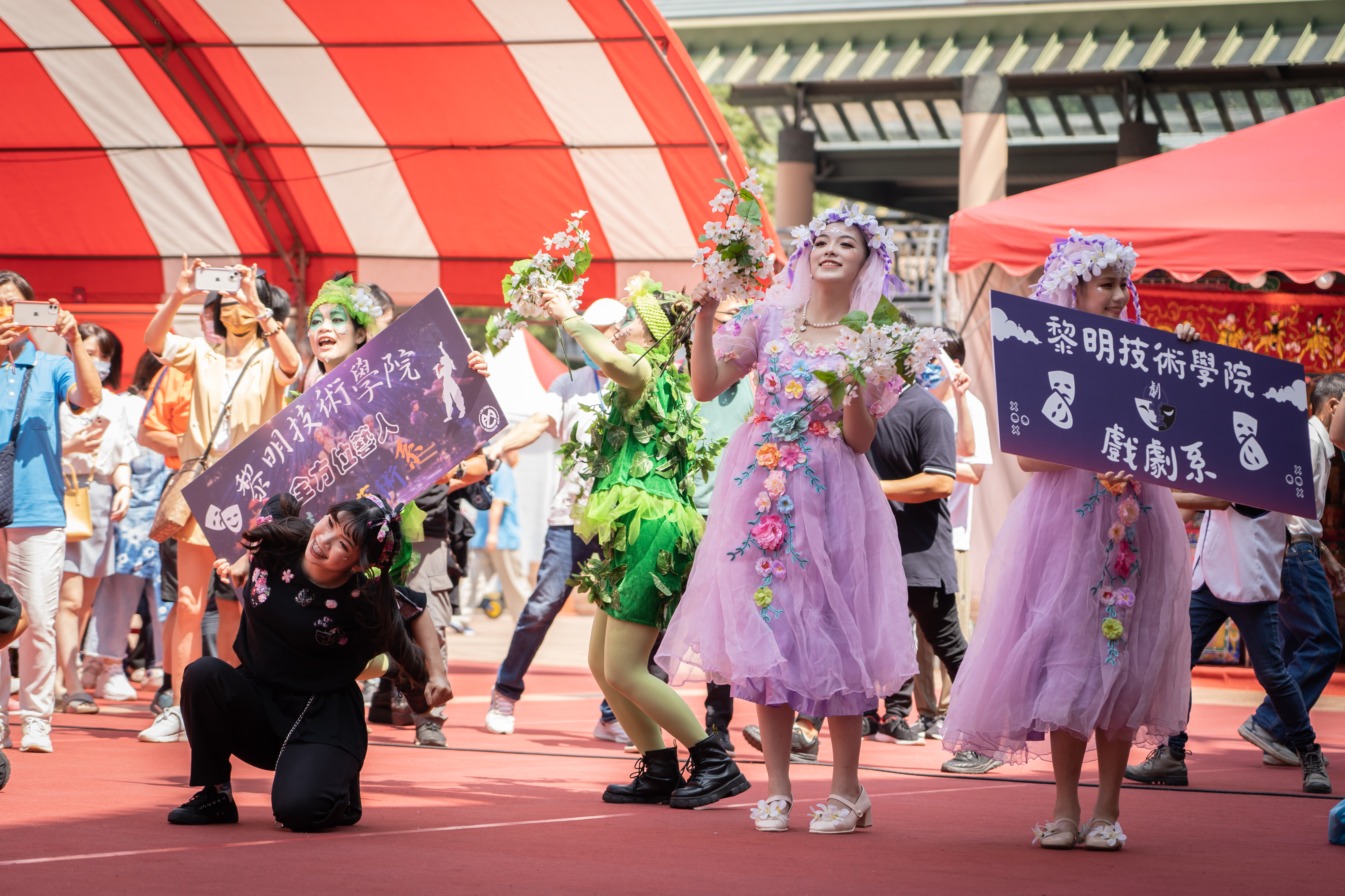 「111年新北市客家義民爺文化祭」10月2日於市民廣場舉行,由市長侯友宜擔任主祭官,虔誠恭讀祝禱文祈求「國泰民安、風調雨順」,黎明技術學院戲劇系、表演藝術系師生受邀擔任大會主場表演獻藝,現場數千觀眾圍觀喝彩,將義民爺文化祭帶到活動最高潮。今年參與義民爺文化祭的學校相當多,大專院校除了黎明技術學院外,還有亞東科技大學;幼兒園方面有圓心坊幼兒園、忠山幼兒園及立信幼兒園;國小方面有土城區頂埔國民小學、中和區秀山國民小學f、板橋區溪洲國民小學及新北市板橋區莒光國民小學,9所學校熱情參與,各所學校利用巧思,運用客家元素搭配服飾或製作道具,幼兒園及國小多以花布領巾搭配制服,展現濃濃客家味,活潑可愛;亞東科技大學學生身穿藍染服飾親臨現場,展示客家文化之美。由莒光國民小學20位童子軍傳接貴賓擔,展現童軍合作服務精神,以及客家文化世代傳承永續意涵。
