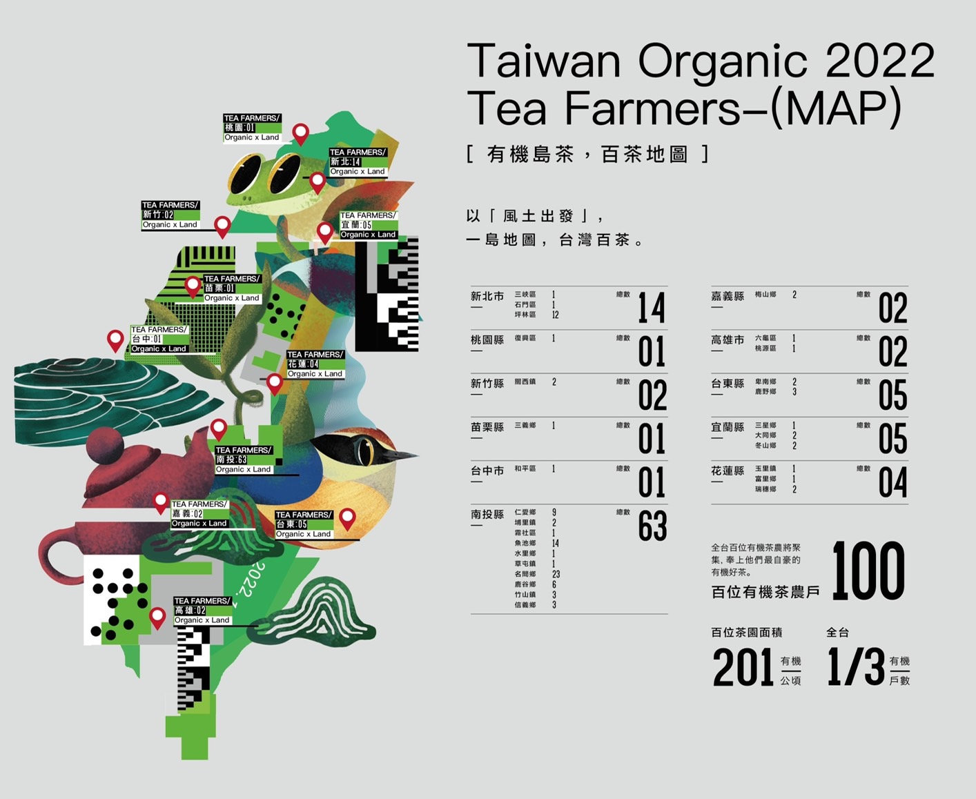 根據農糧署截至今年(2022) 9月的統計,臺灣有機農戶共4,672戶、耕地面積為13,101公頃,臺灣有機茶農戶數共有325戶、耕地面積為510公頃。由於臺灣茶的栽種多位於高山或水源區上游,以友善環境方式耕作的有機茶園,在守護水源、土地,以及生態保育之影響力甚廣,因此農糧署特別在2019年起委託慈心基金會於南投茶業博覽會特別設置「有機茶主題館」,邀集了100位有機茶農共襄盛舉,相當於匯集了全臺三分之一的有機茶農,成為最具規模的有機界盛事。