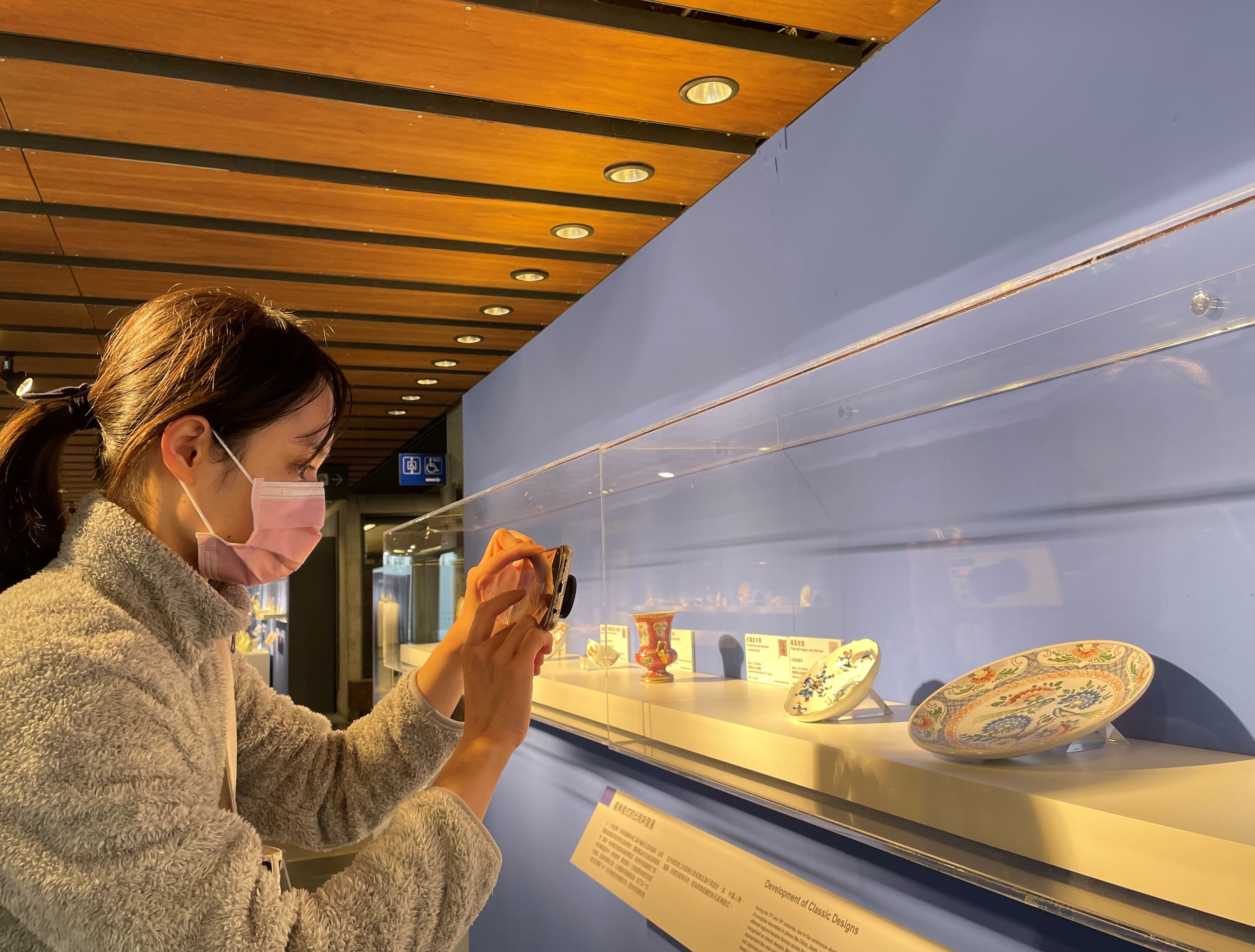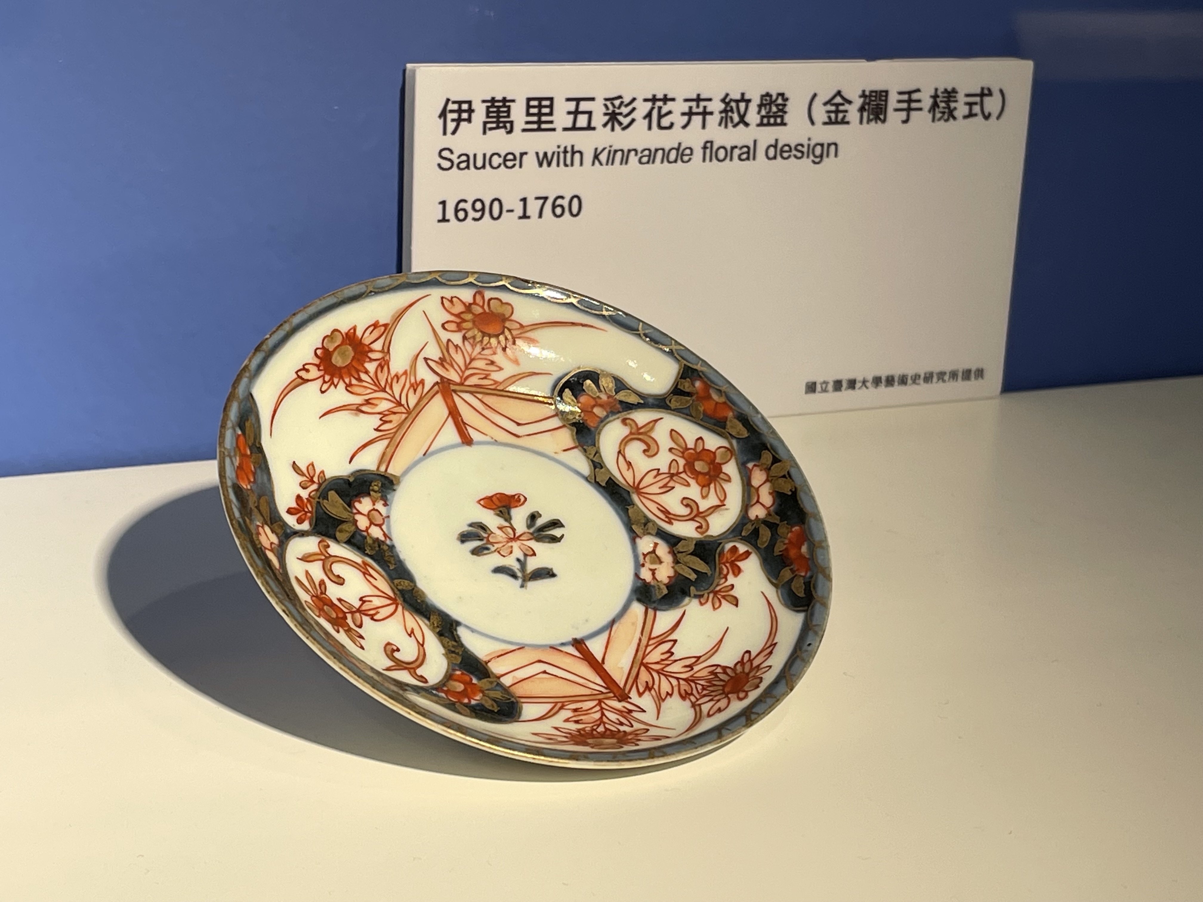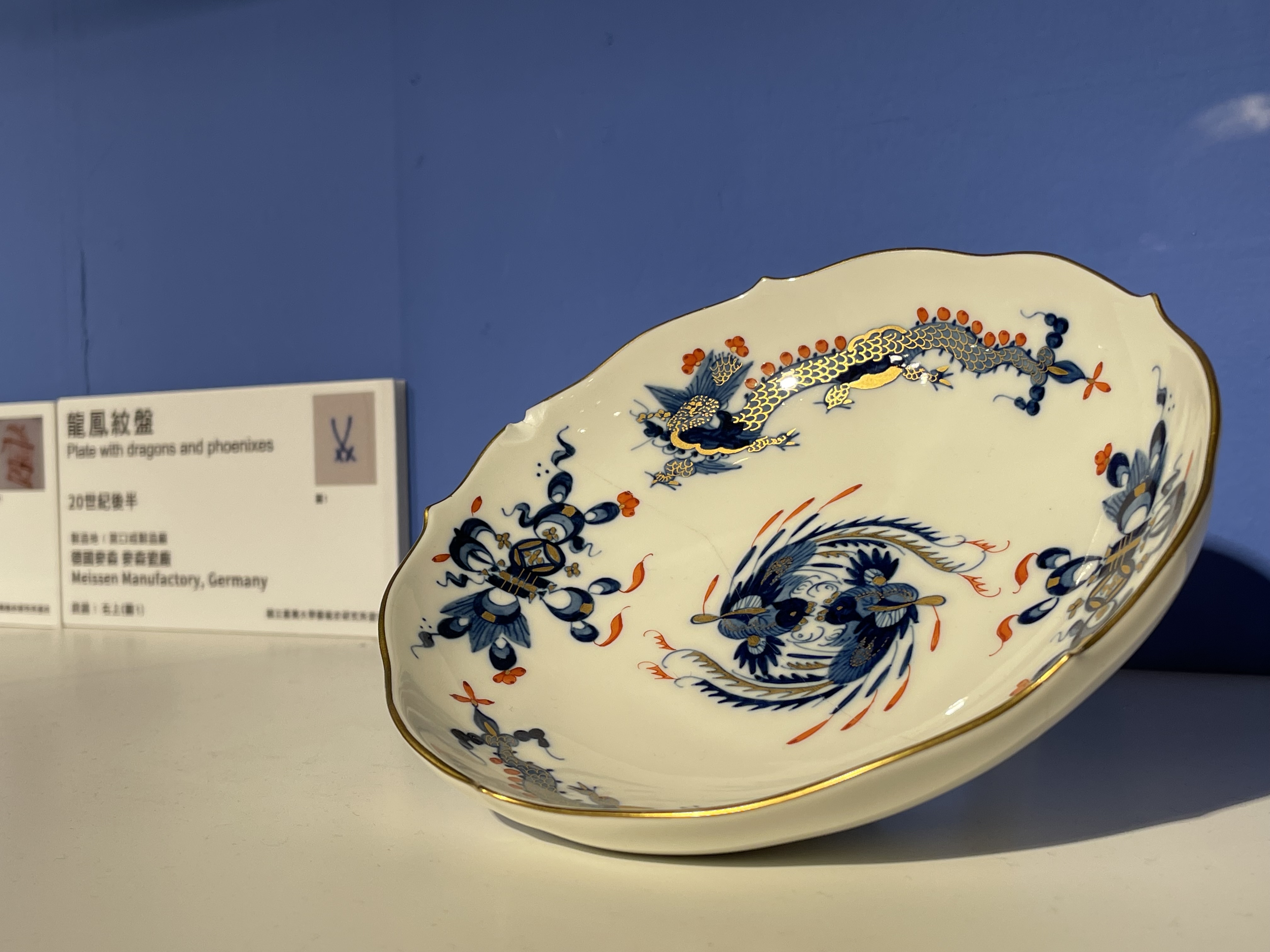 「必勝經典款」單元,一探當時流行的色彩組合與紋樣風潮,像是日本有田產製的《伊萬里五彩花卉紋盤》,以藍、紅、金為主要色調,配色與紋樣組合豐富,呈現華麗的風格;德國麥森瓷廠擷取東亞瓷器的裝飾元素再設計,龍鳯、中國人物、印度花樣等經典系列款式,民眾可在《龍鳳紋盤》細細欣賞品味。