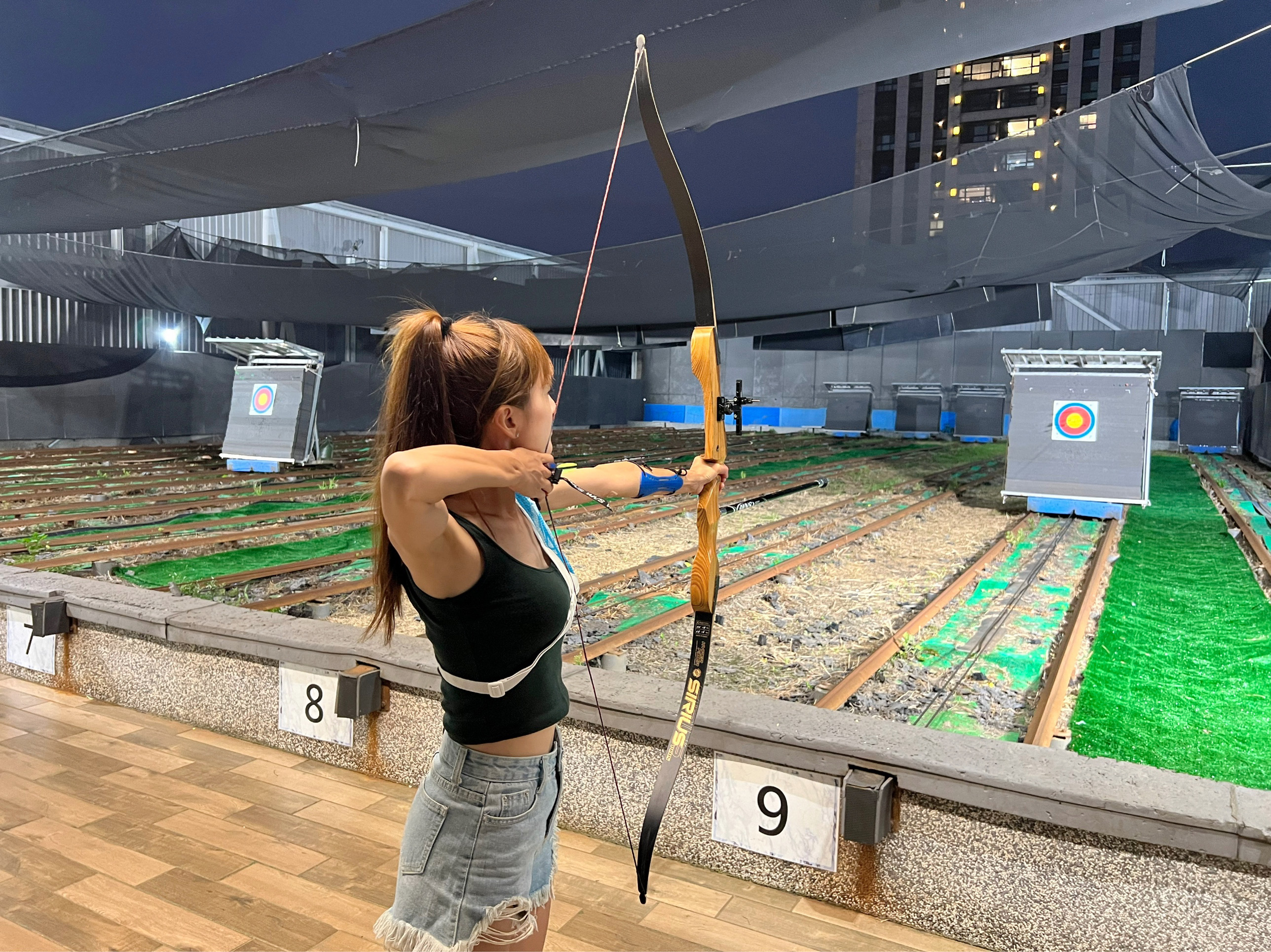 翁滋蔓初次體驗電動靶場(照片來源:漫橘國際事業有限公司)