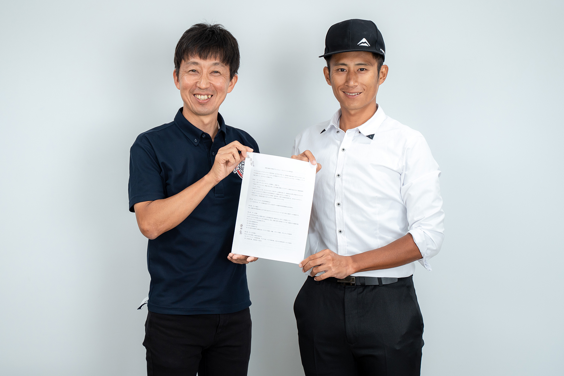 日本宇都宮閃電車隊社長柿沼章(左)親見來台與馮俊凱(右)簽約,顯見日方對於此次合作的重視_photo credit 圓創運動行銷. 圖/圓創運動行銷 提供