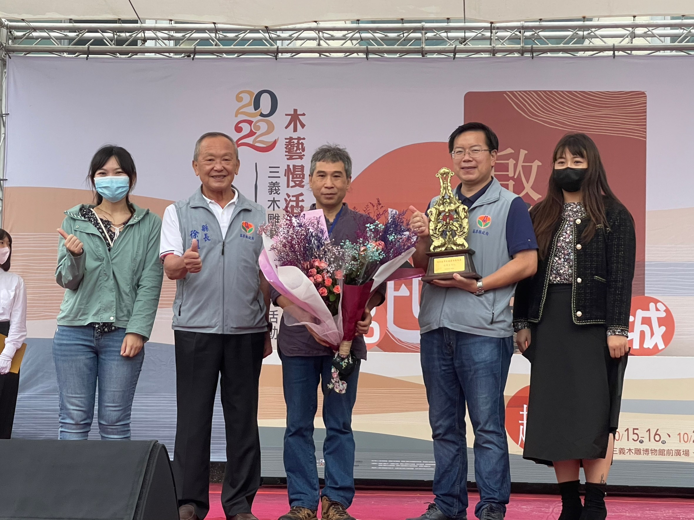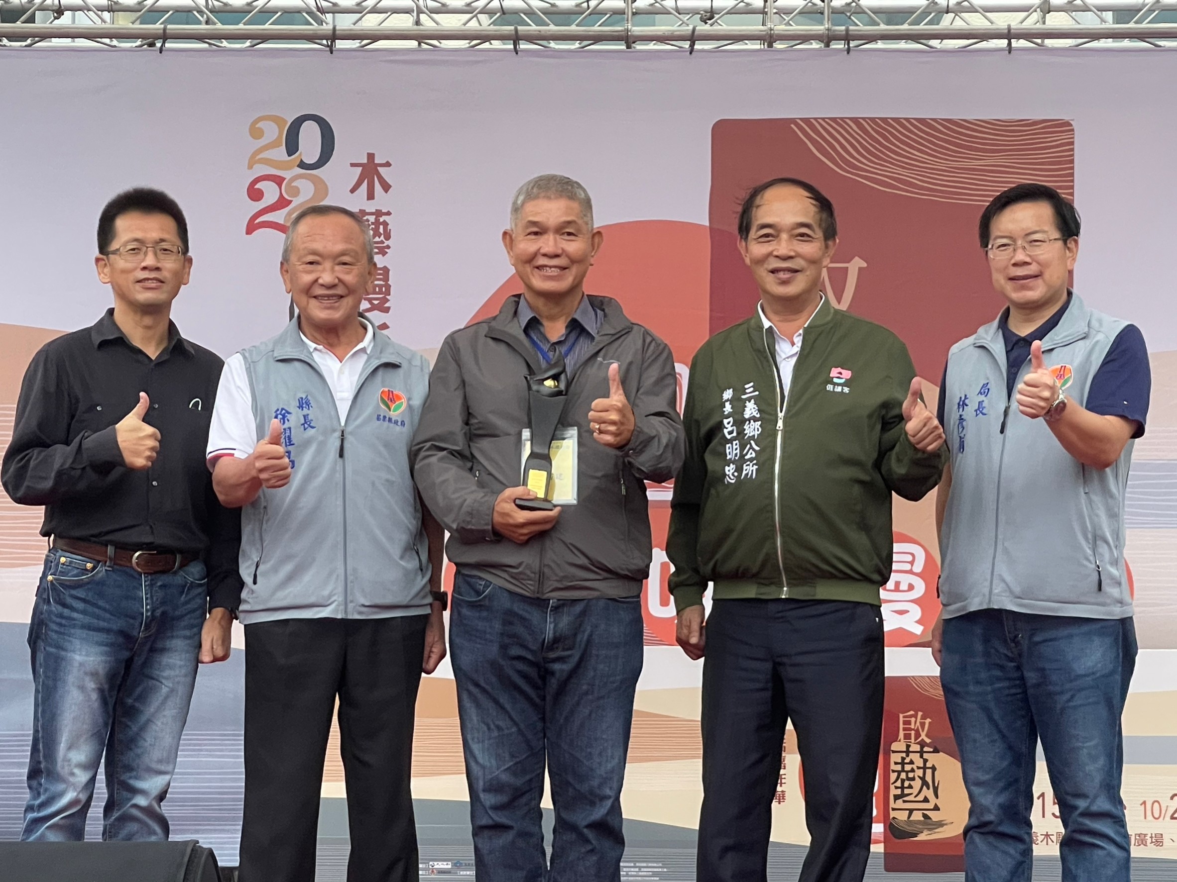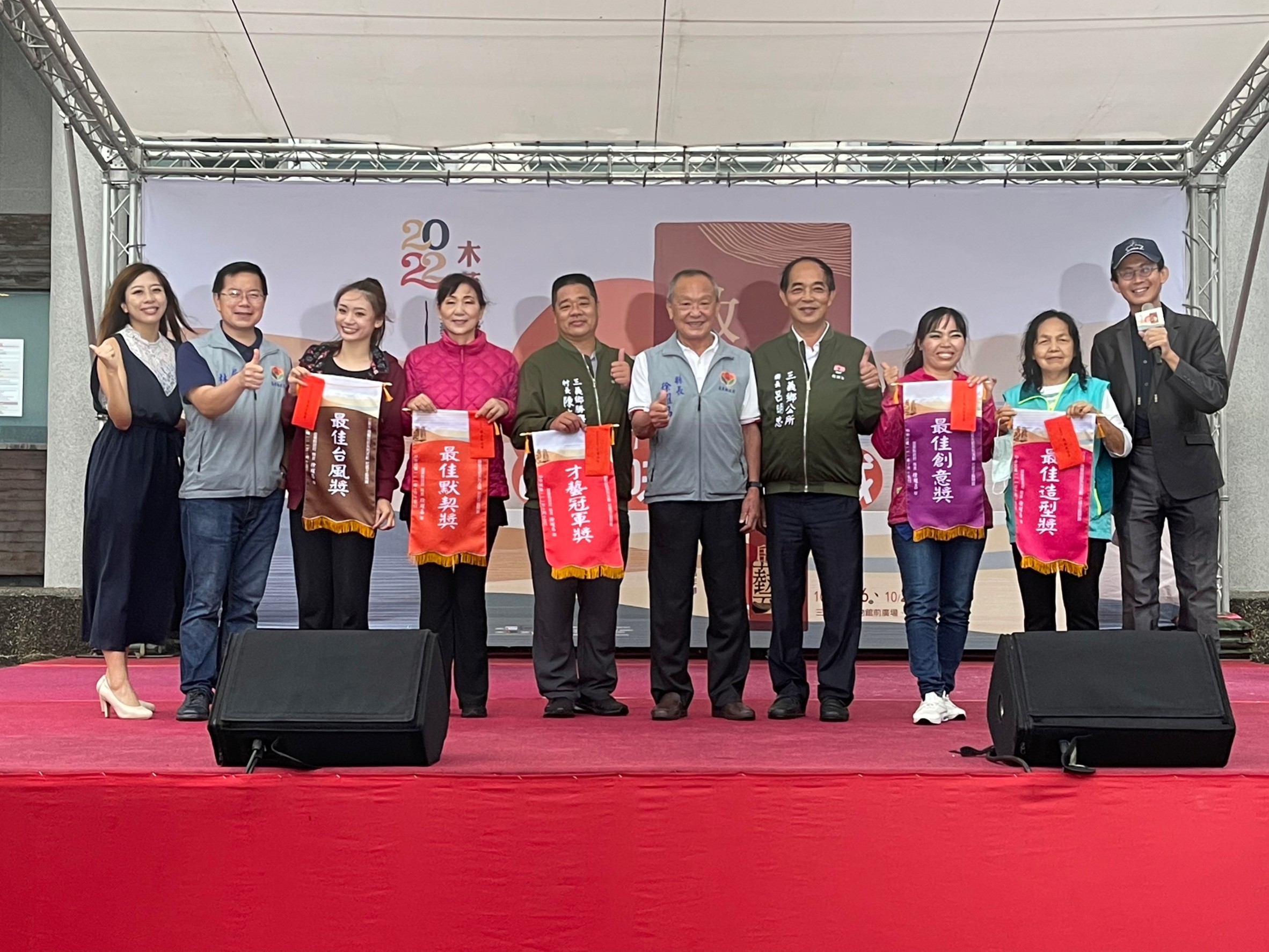 「2022三義木雕藝術節系列活動-起藝. 啟藝 木藝慢活嘉年華」,於10月15日上午11時,在三義木雕博物館前廣場盛大展開,以祭祀巧聖先師魯班公揭開序幕,傳達對祖師爺魯班的尊崇與感恩。下午1時30分三義鄉親總動員,以精采的才藝表演,為今年的三義木雕藝術節帶來了充滿熱情與活力精采節目。