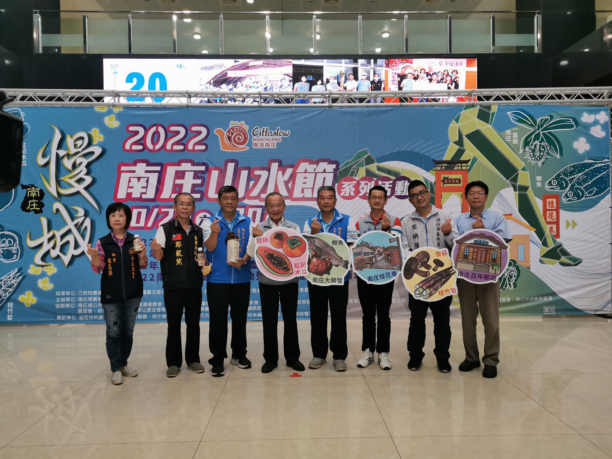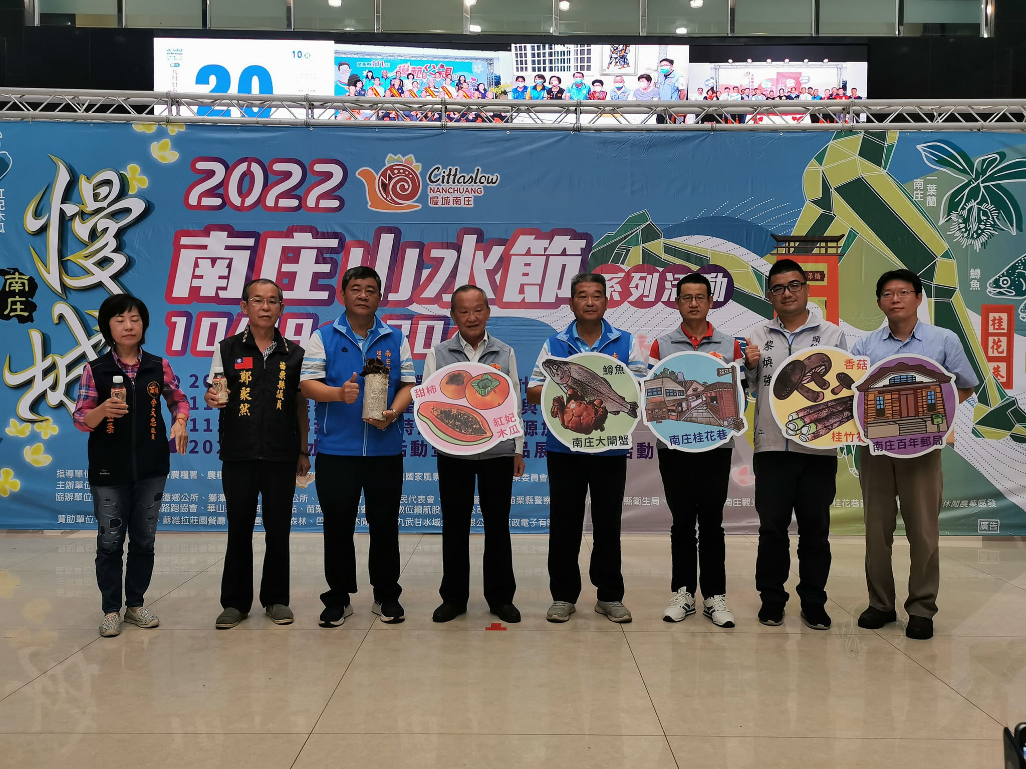 20日苗栗縣長徐耀昌一同推廣南庄山水節活動,邀請遊客到南庄體驗慢城人文風情並享用客庄美味。