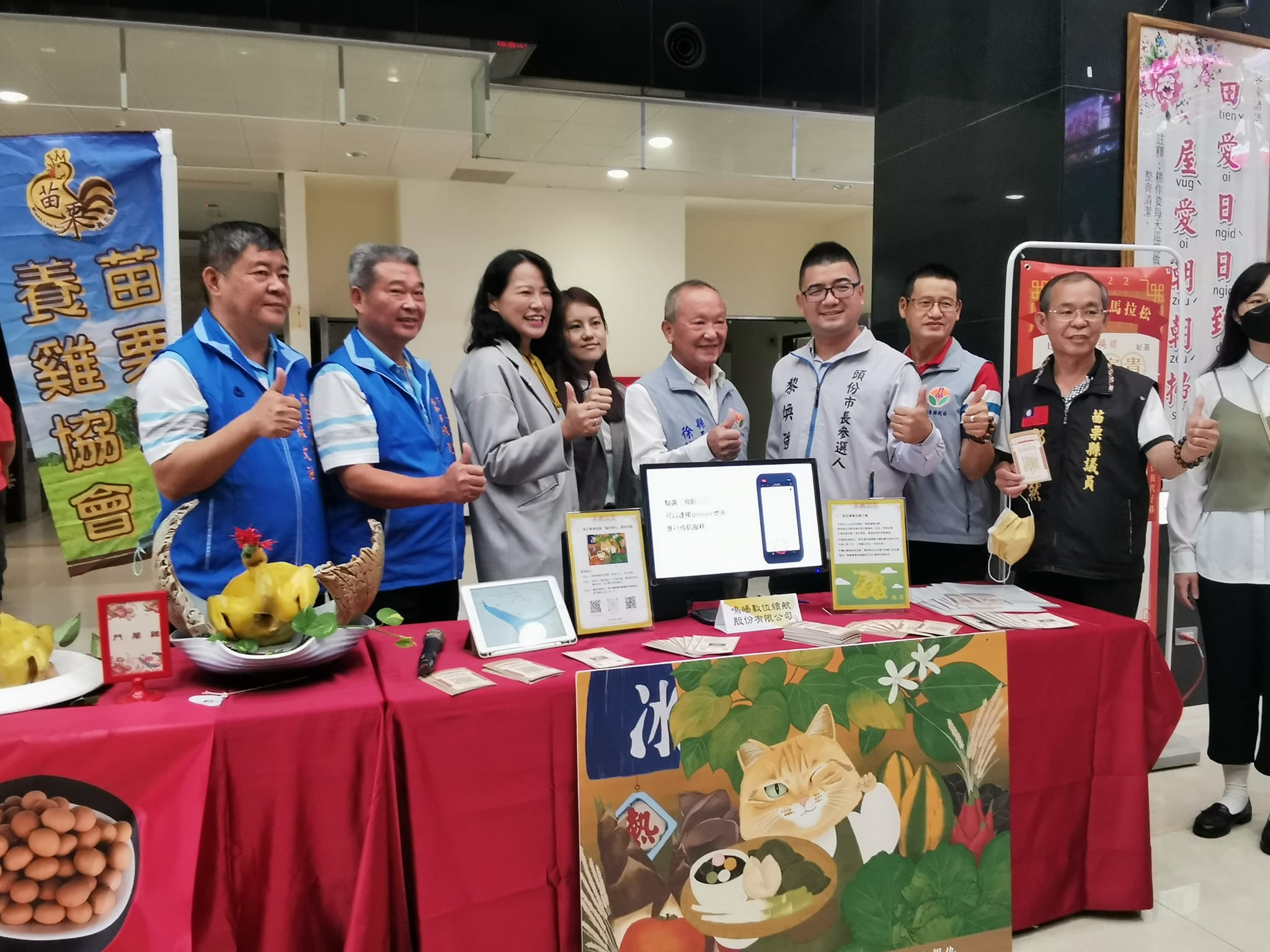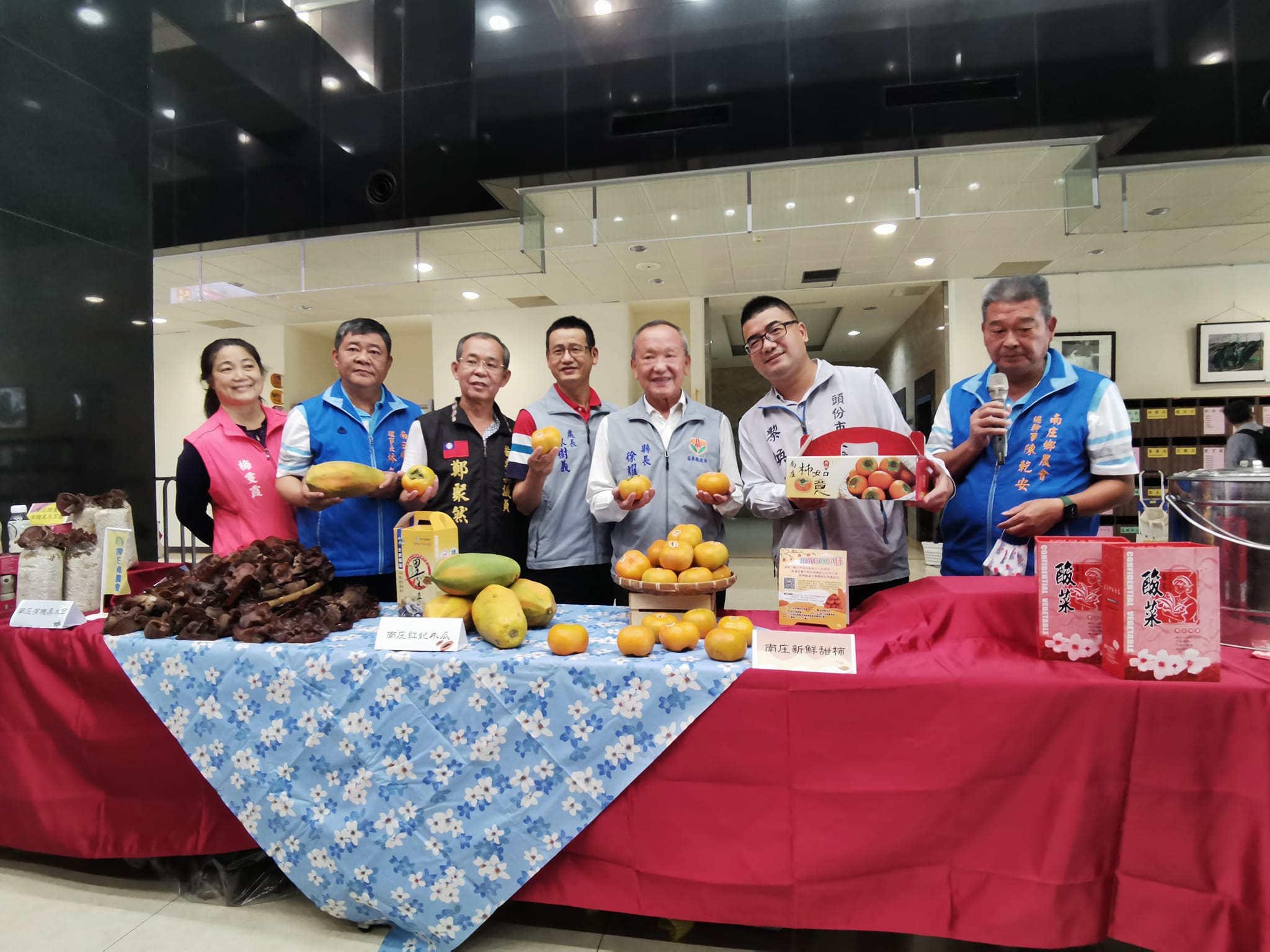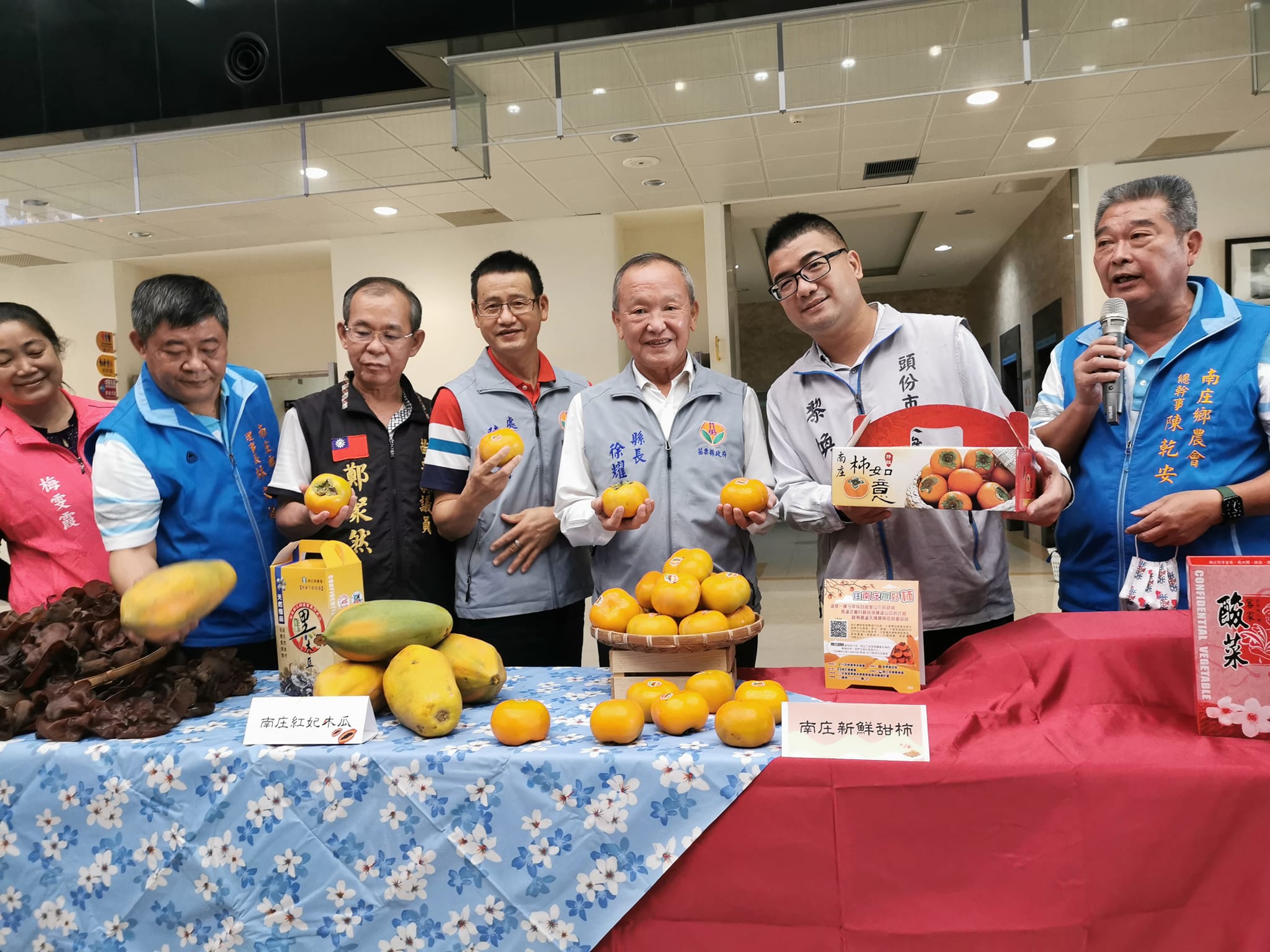 20日苗栗縣長徐耀昌、議員黎煥強、鄭聚然、南庄鄉農會理事長林文福、總幹事陳乾安等人共同宣傳29、30日南庄山水節活動,並且參觀現場展示的木耳、甜柿、仙草茶、雞蛋、雞肉等推薦南庄優質的農特產品。
