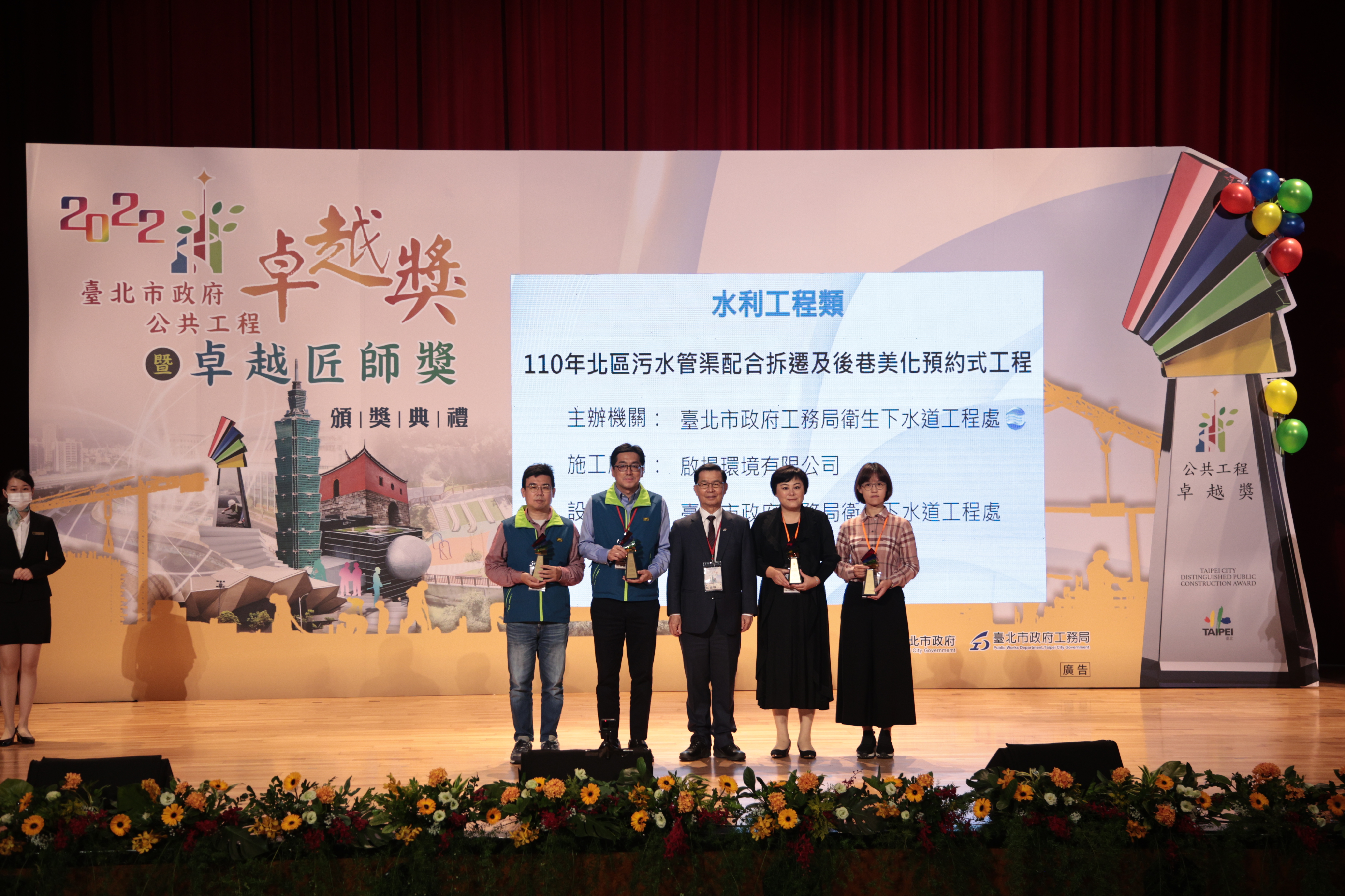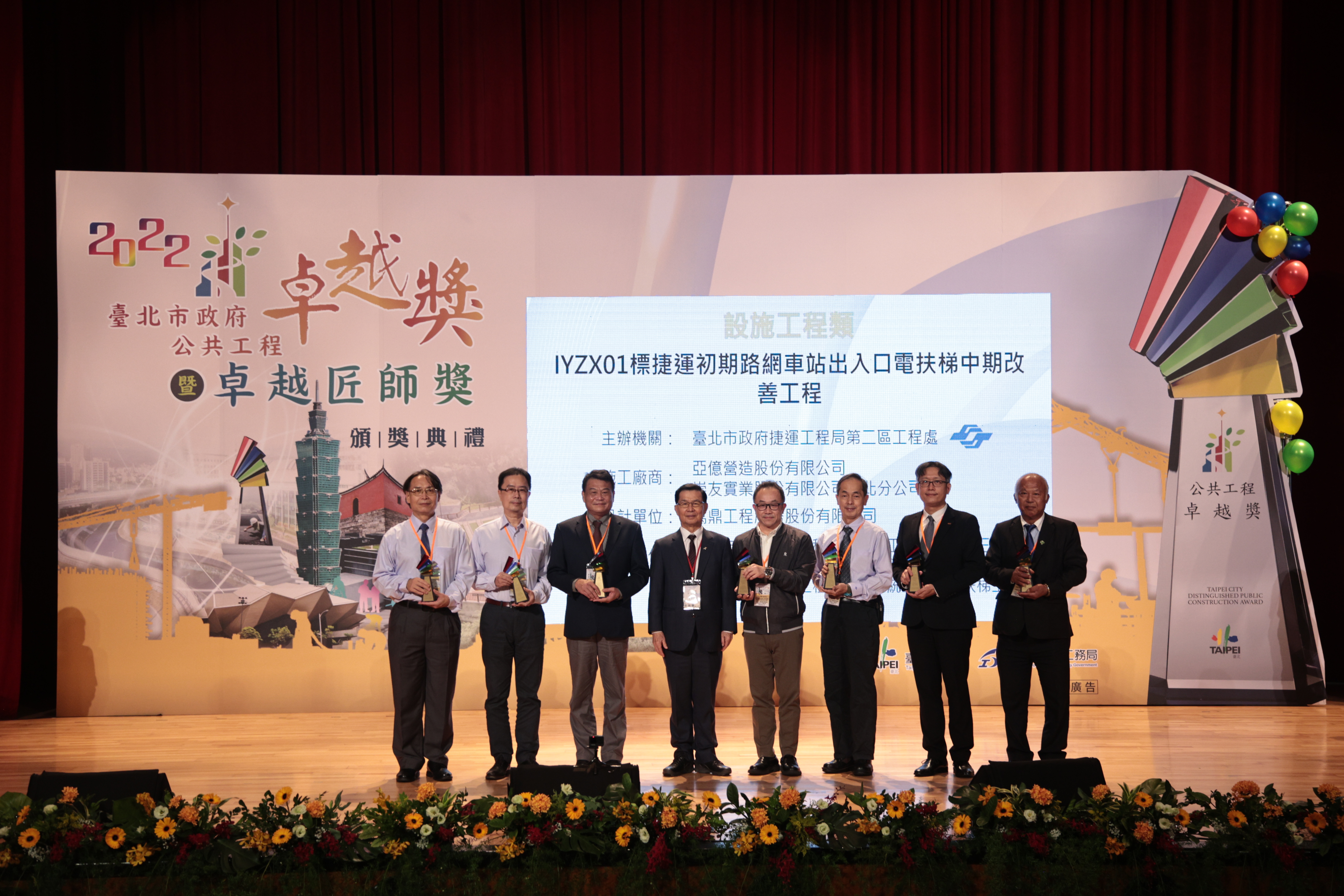 象徵北市府公共工程最高榮譽的公共工程卓越獎,今年已邁入第十一屆,不但彰顯工程人員的辛勞與奉獻,更促進良性競爭,提升公共工程品質。頒獎典禮於10月18日舉行,由副市長彭振聲親自頒獎表揚各獲獎工程團隊。