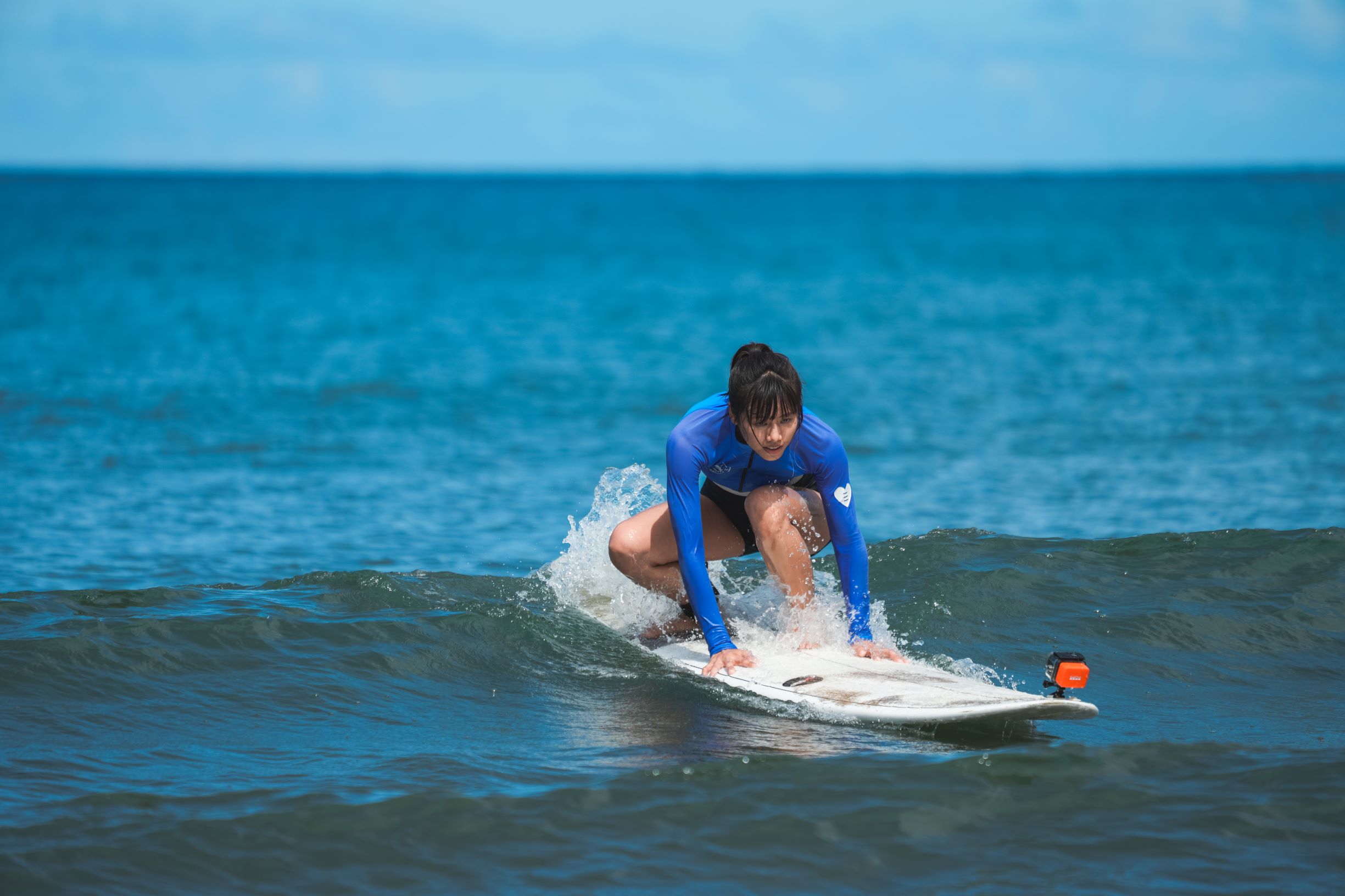 吳汶芳表示,她本身非常喜歡海,這幾年不能出國,她就在台灣到處潛水跟衝浪,中角灣真的很漂亮!沙的顏色很美,游出去的感覺隨著浪沖回來的感覺都不一樣。這次能幫中角灣拍衝浪影片真的很高興,也希望國內外的朋友能夠喜歡上大海,認識離大城市最近的中角灣。