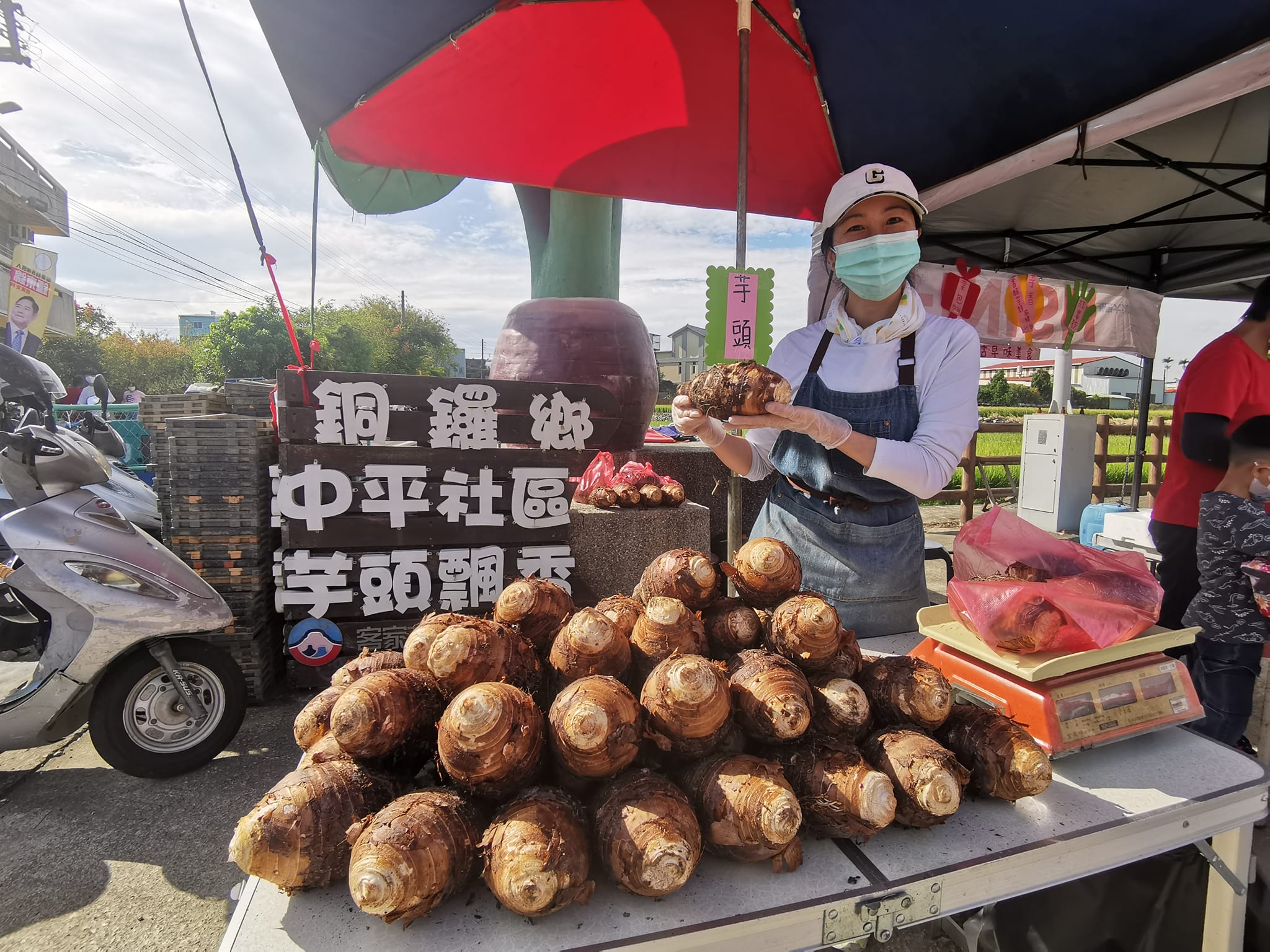 10月22日銅鑼鄉公所在中平集會所,現場安排了採芋頭的食農教育體驗、搓芋圓DIY體驗,還有姍姍舞蹈表演及紅如樂團表演精彩的客家歌曲,還有社區團體的藝文表演,民眾可以現場參加闖關換美食券活動,還有相遇市集農特產展