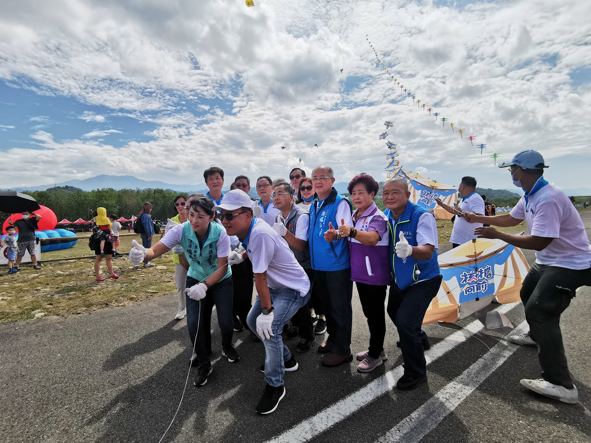 「苗栗2022風箏文化暨客家美食節」於10月22日盛大開場,22、23日一連兩天於苗栗市河濱公園舉行,今(22)日開幕式,由苗栗市長邱鎮軍邀請客家委員會主委楊長鎮、苗栗市民代表會主席楊喬安等貴賓放飛「㧡擔·向前」扁擔風箏,為「苗栗2022風箏文化暨客家美食節」揭開序幕。