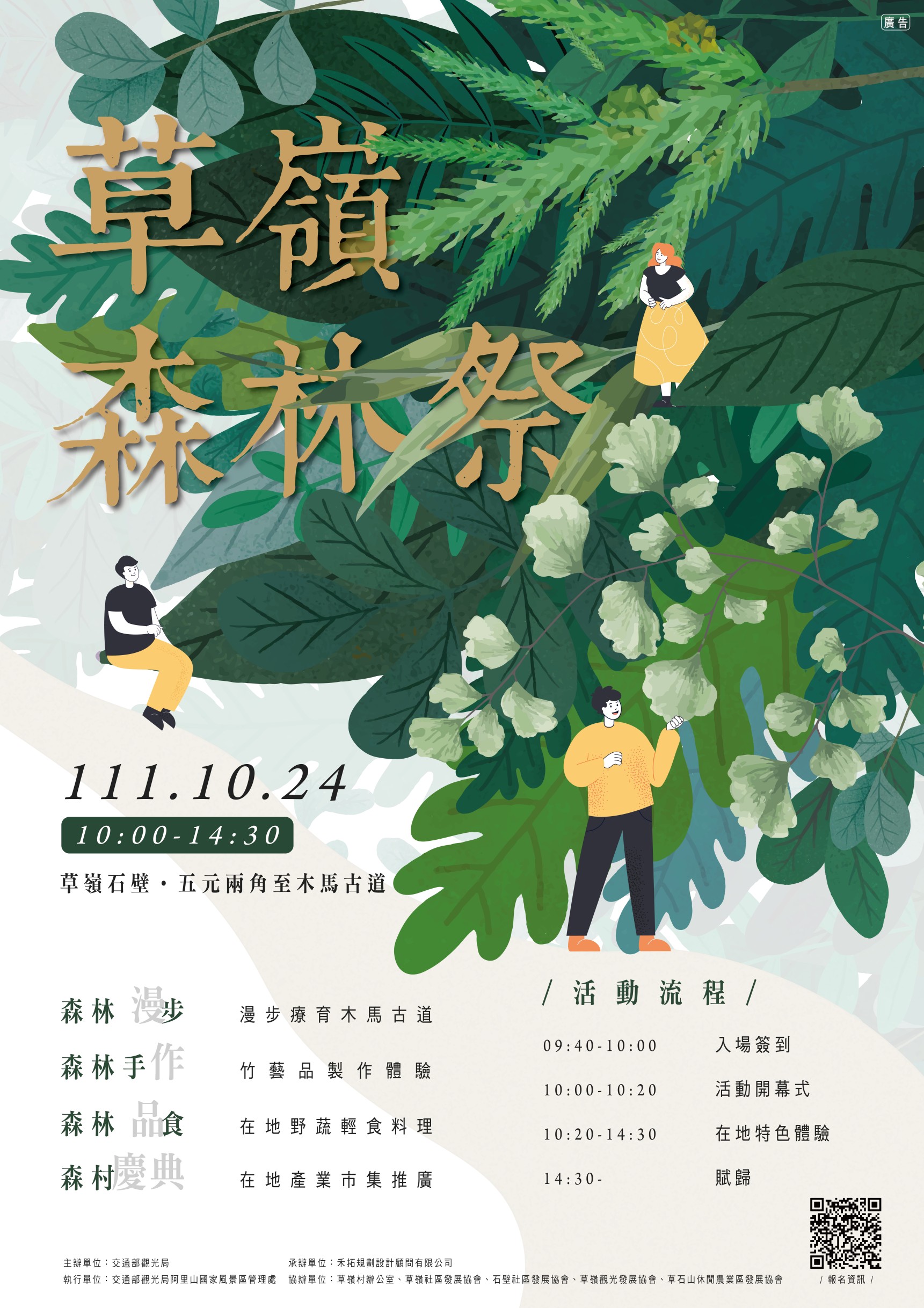 雲林縣古坑鄉草嶺石壁地區擁有豐厚的地質和自然景觀,以及各式步道和古道穿梭其間,為推動草嶺地區作為森林療癒基地新能量,交通部觀光局阿里山國家風景區管理處(以下簡稱阿里山管理處)以森林古道、五感療癒、體驗紓壓等主題,於111年10月24日(星期一)與在地協會及組織共同規劃執行大草嶺觀光圈-「草嶺森林祭|沉浸式體驗」活動,帶領地方產業、協會、社區居民,開啟森林療癒的無限想像。