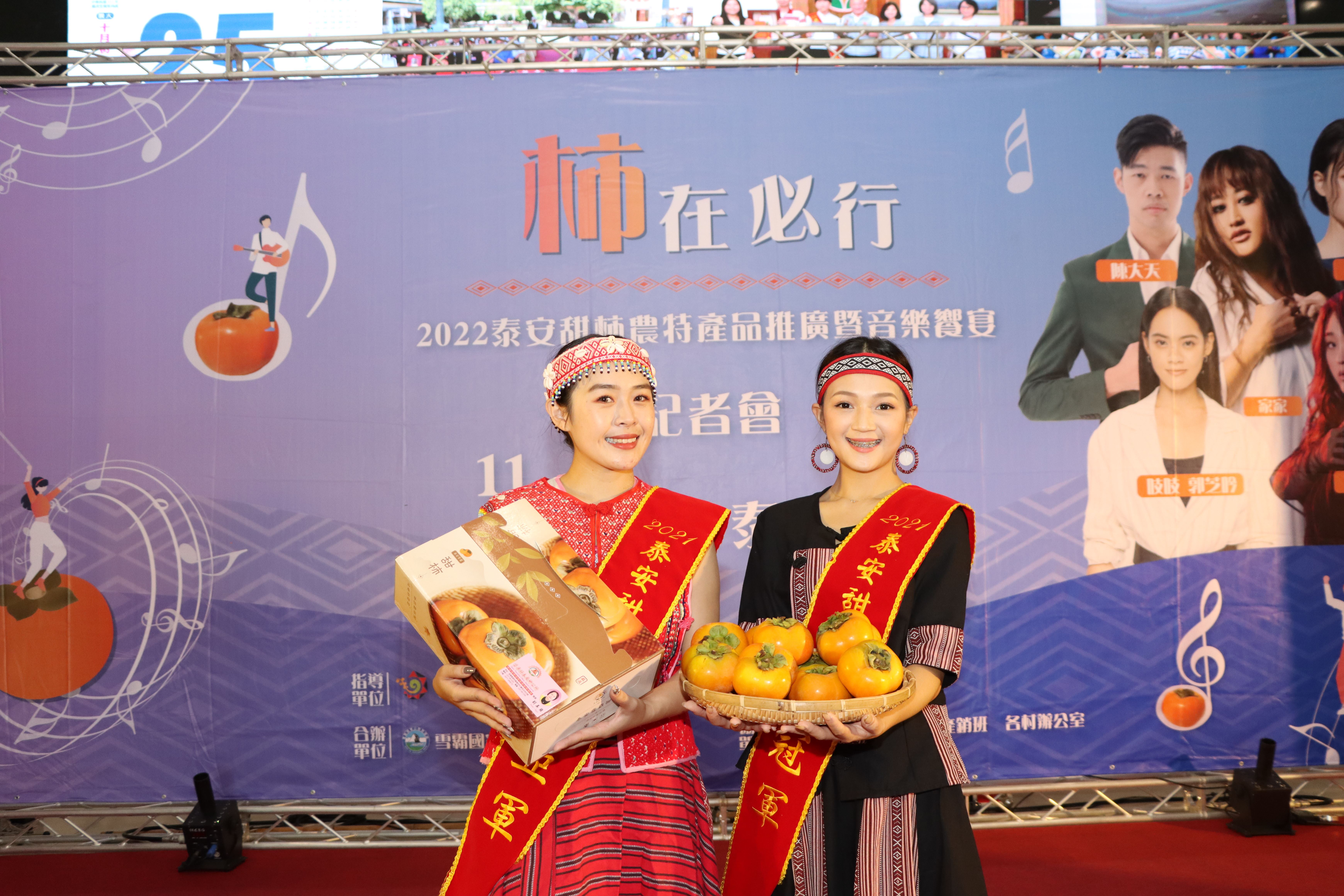 泰安鄉公所積極行銷地方農產業及人文特色,今年泰安甜柿農特產品推廣暨音樂饗宴將於11月5、6日在泰安鄉公所新行政大樓登場,邀請原住民歌手家家、陳大天、吱吱、許莉潔、許淨淳現場演唱、加上豐富摸彩品電動摩托車、iPhone 14、iPad、液晶電視等多項大獎,吸引民眾到泰安遊玩,藉以促進產業升級。