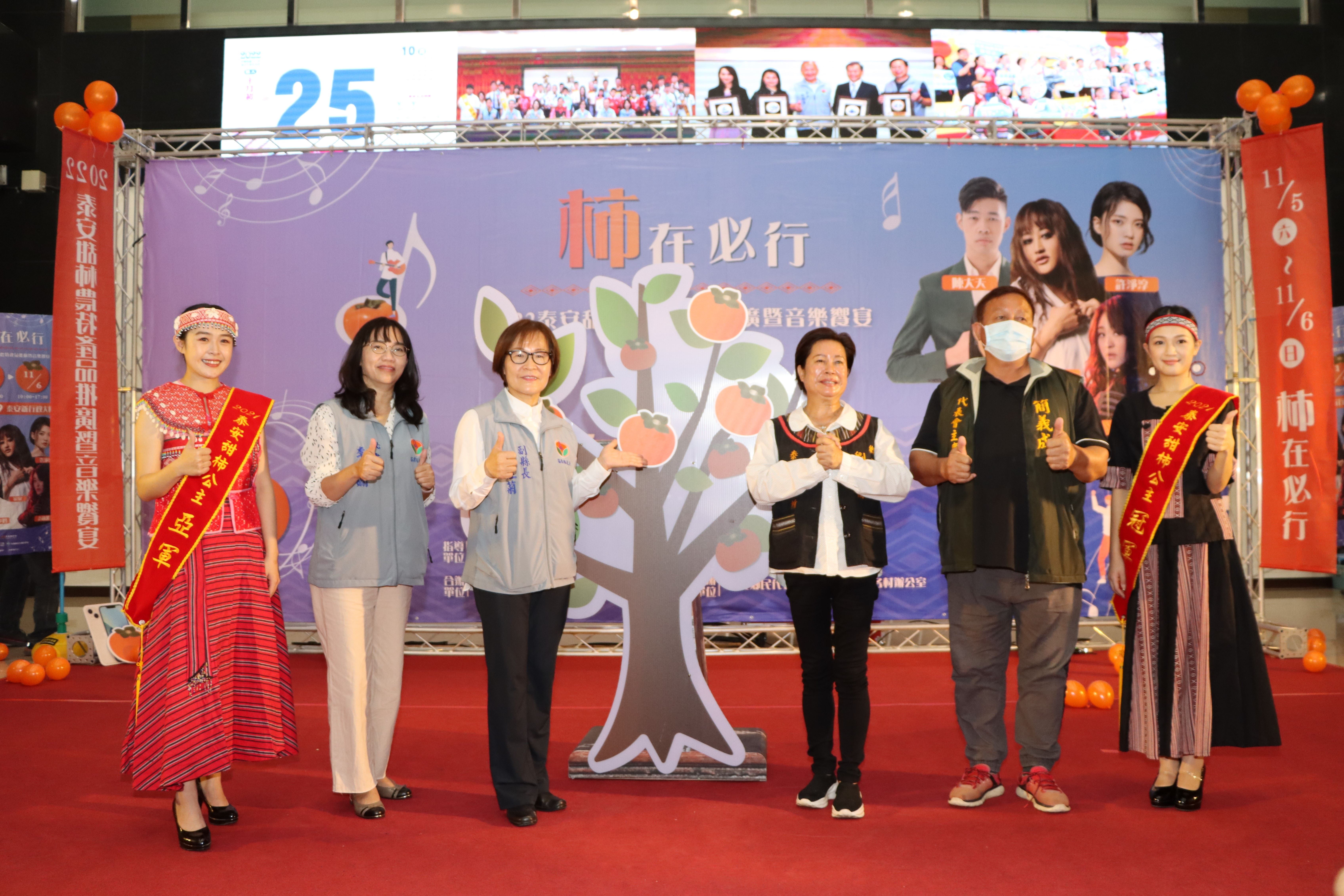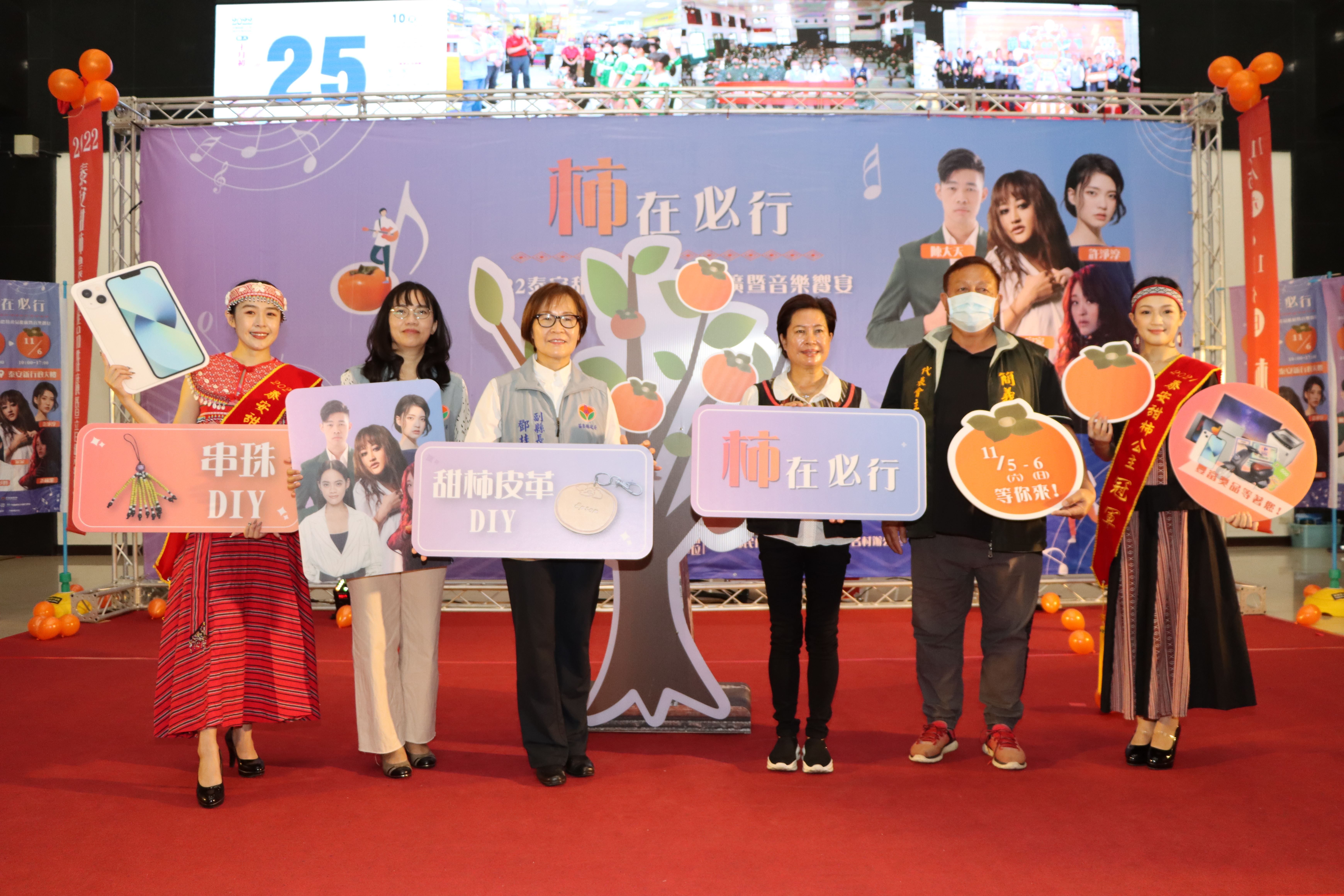 苗栗縣副縣長鄧桂菊表示,柿子紅了就想到泰安鄉,也代表泡湯的季節到了,在劉鄉長的任內更發展泰安鄉的能見度,是行銷在地農產、景點的重要推手,透過今天的記者會也可見到去年在公平公正選拔下誕生的甜柿公主,兩位眉清目秀且多才多藝,充滿元氣,正好呼應甜柿的香脆甜美,邀請大家到泰安旅遊舒壓,享受精彩的音樂與美食饗宴。