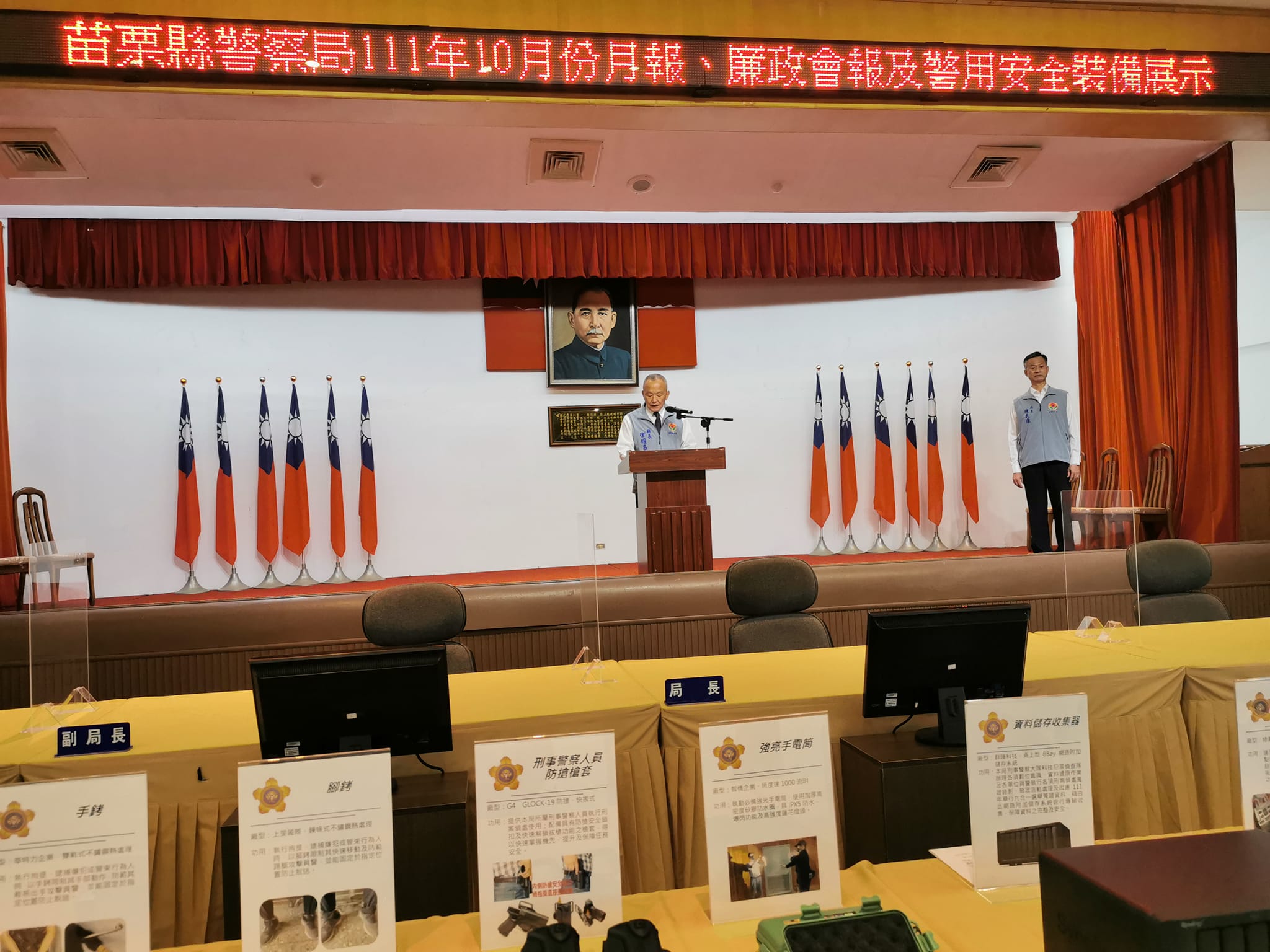 縣長徐耀昌表示對警察局展現卓越的辦案能力表達高度肯定,感謝大家的辛勞與付出;更感謝縣警察局長陳武康展現高度的效率,於最快的時間採購員警應勤亟需之裝備,因攸關員警執勤安全的事,就像緊急救護一樣不能等。最後期許苗栗縣的員警們都能在安全有保障的前提下,展現精實的專業,扮演打擊犯罪的急先鋒,守護苗栗鄉親的安全。