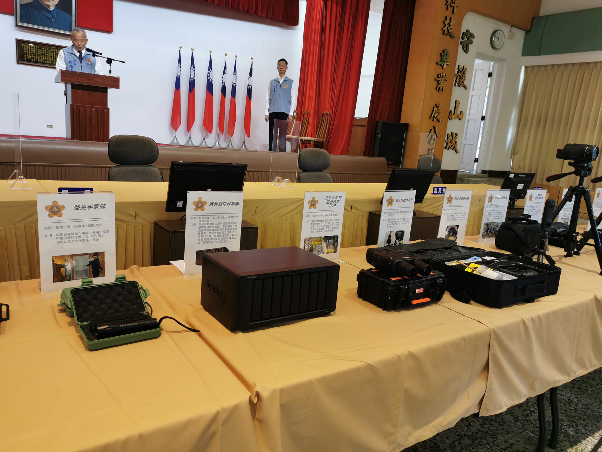 今年8月發生臺南市政府警察局2名員警因公殉職的不幸案件,凸顯警察執勤安全的重要性,縣長徐耀昌特別動用第二預備金,耗資新臺幣800萬元,添購拋射式電擊器卡匣、防暴鋼叉、防割手套、防暴PC盾牌、長警棍及防搶槍套等22項警察應勤安全裝備,作為大家最堅強的後盾。