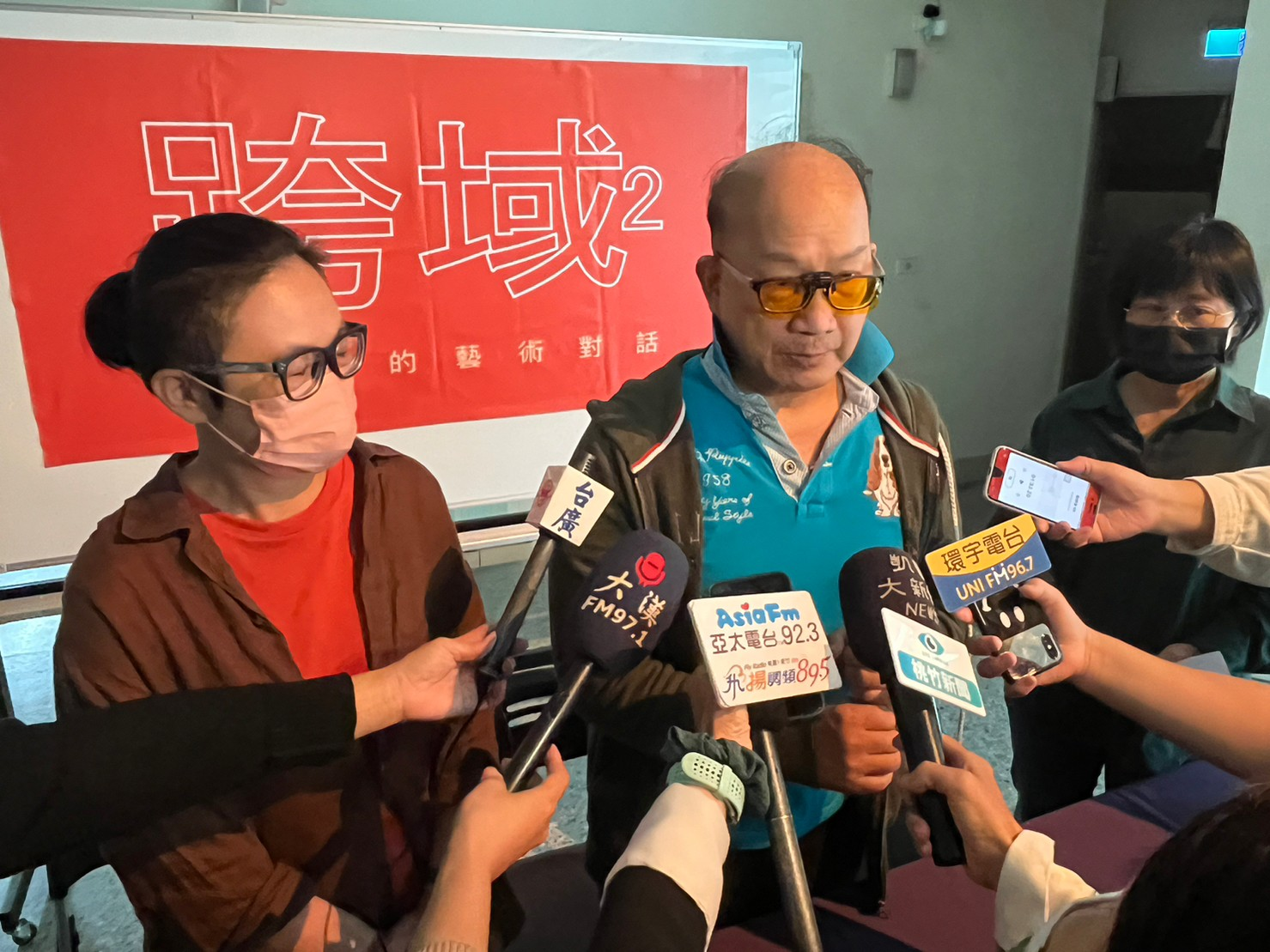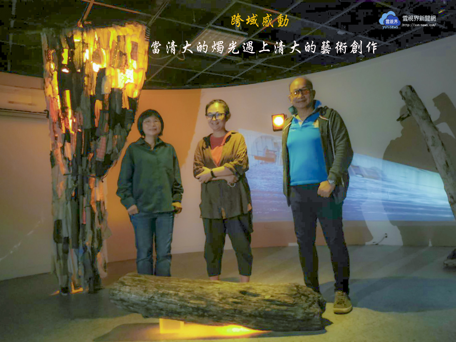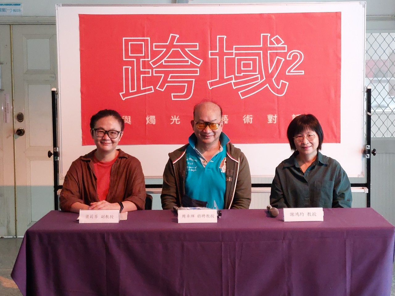附圖一、清大材料系周卓煇特聘教授(中)、藝設系梁莉苓副教授(左)、藝設系謝鴻均(右)召開藝術展記者會。