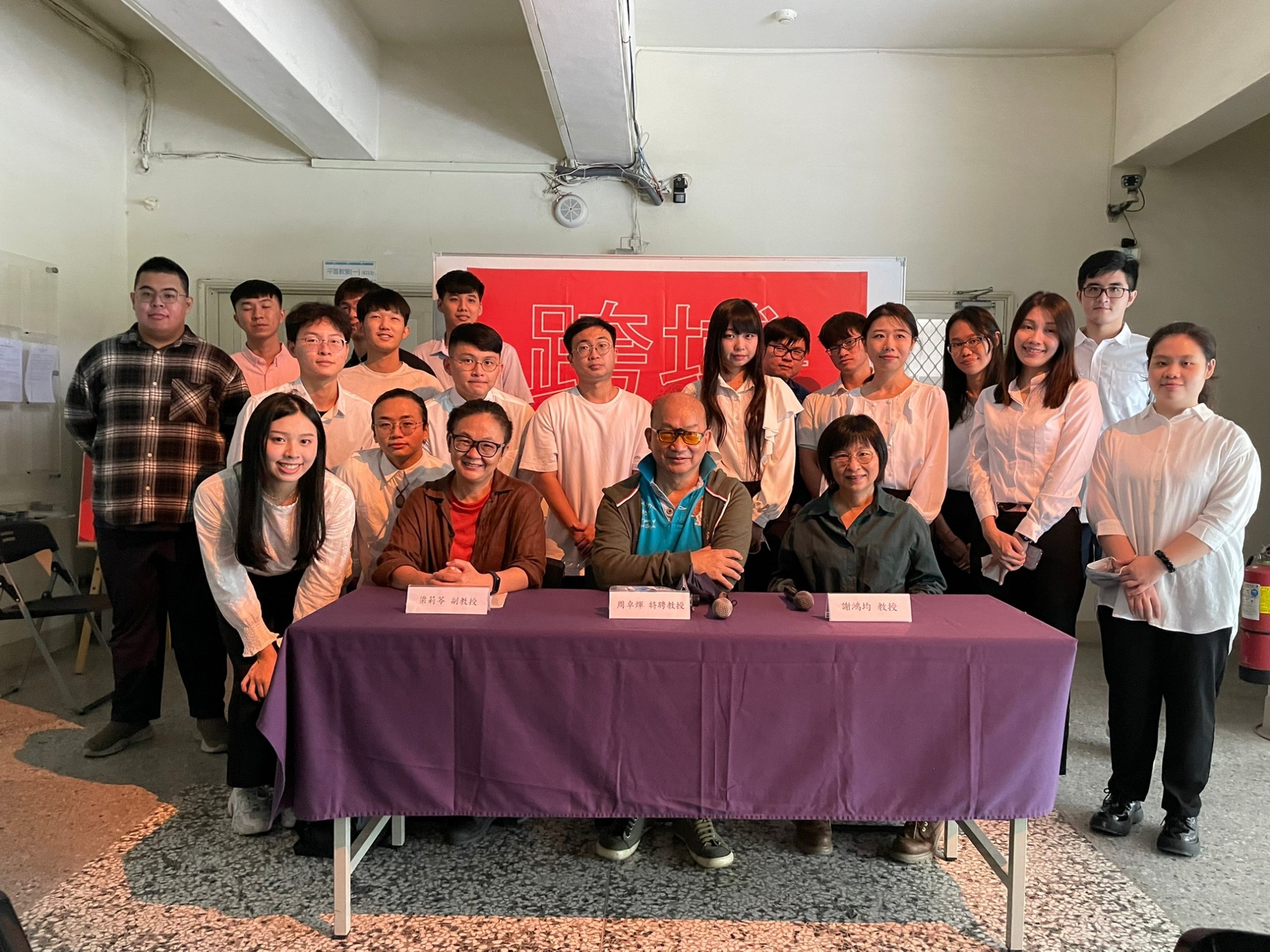 附圖二、清大周卓煇特聘教授、藝設系梁莉苓副教授、謝鴻均教授與全體工作人員合影。