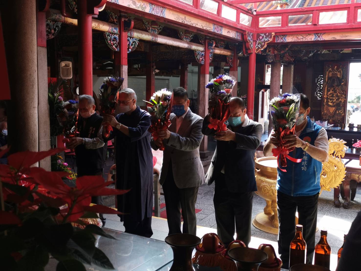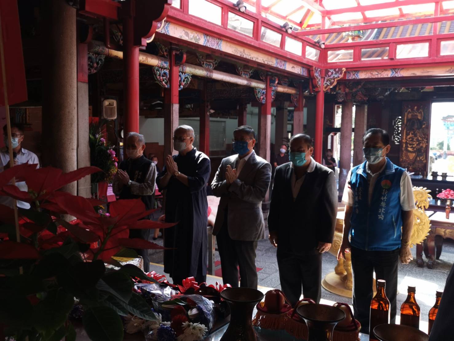 新埔褒忠義民廟111年度義民爺秋祭大典,今(3日)上午10時循傳統儀式隆重舉辦, 新竹縣長楊文科率領縣府文化局長李安妤、民政處長賴江海等人參加,虔誠禮敬義民爺,祈求縣泰民安、風調雨順、各項縣政順利推動,也祈願疫情趕快過去,地方繁榮發展。