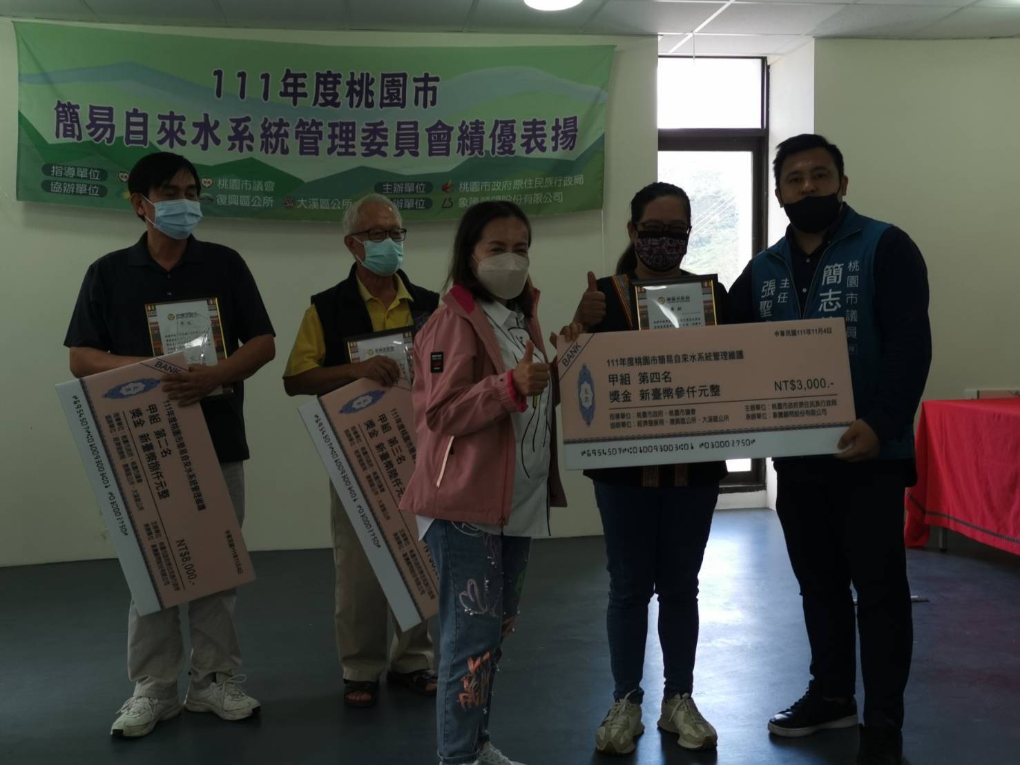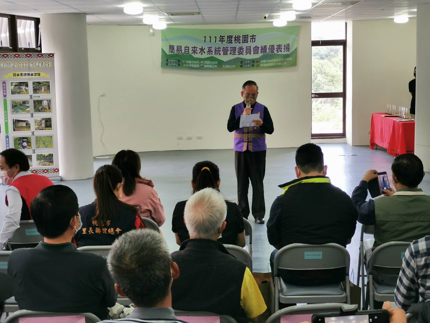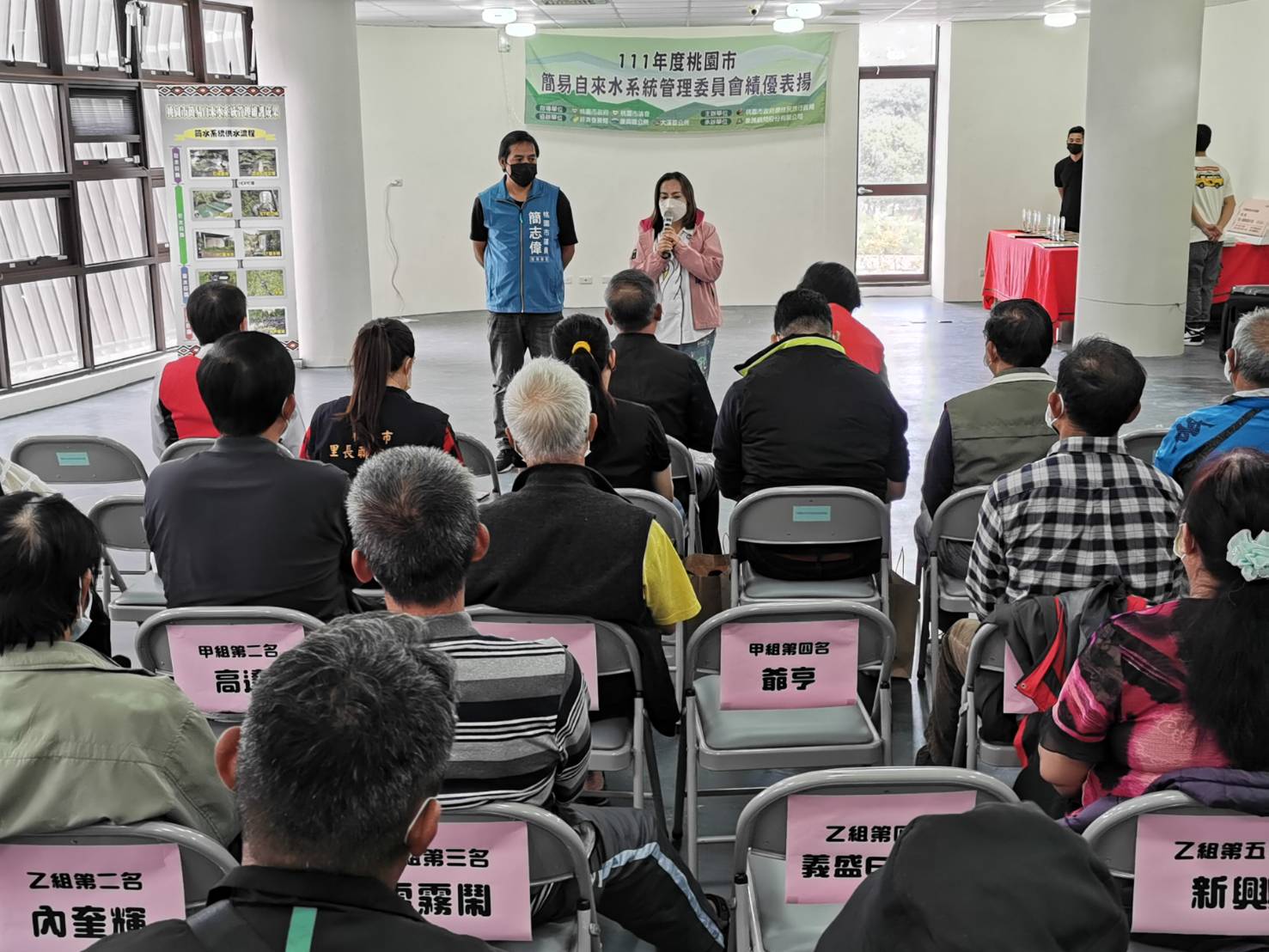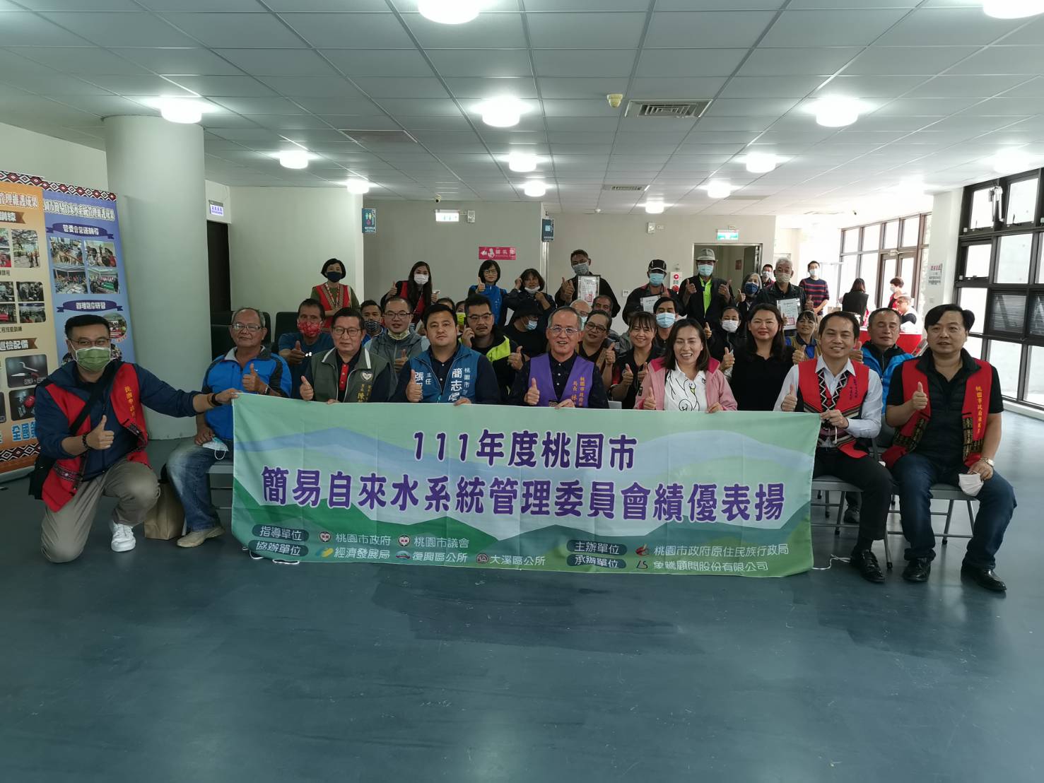 桃園市政府原住民族行政局於羅浮公園推動辦公室舉辦111年度簡水系統管理委员會績優表扬活動,活動依簡易自來水系統管理委員會綪優表揚活動,活動依簡易自來水系統人數區分成大型及小型雨組,各組頒發前五名及特優獎,並選出6位優管理員,藉以給予表現良好的簡易自來水系統管委會及人員鼓勵。
